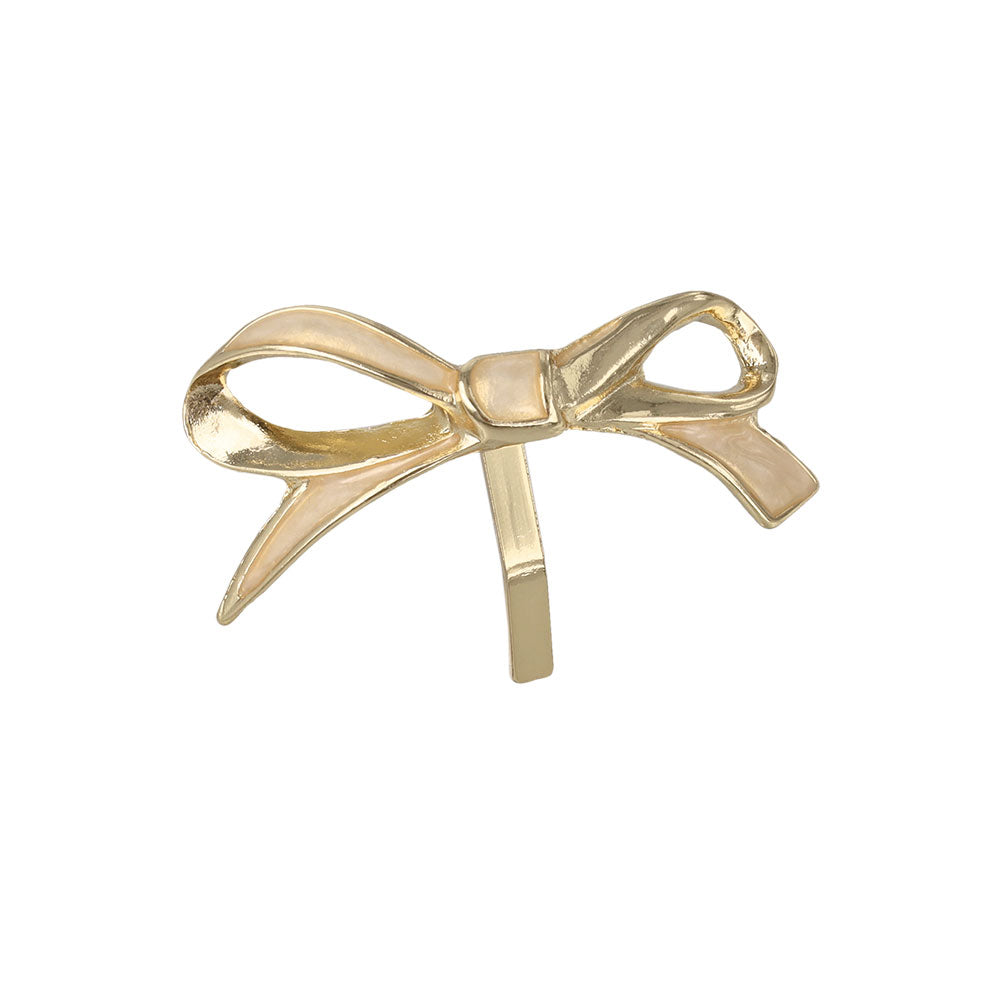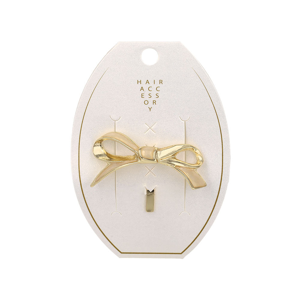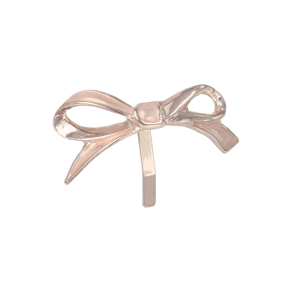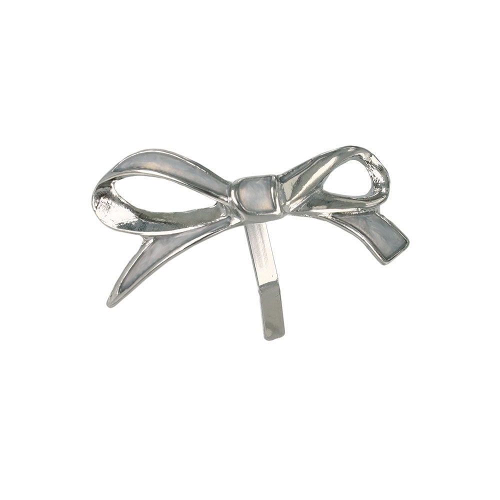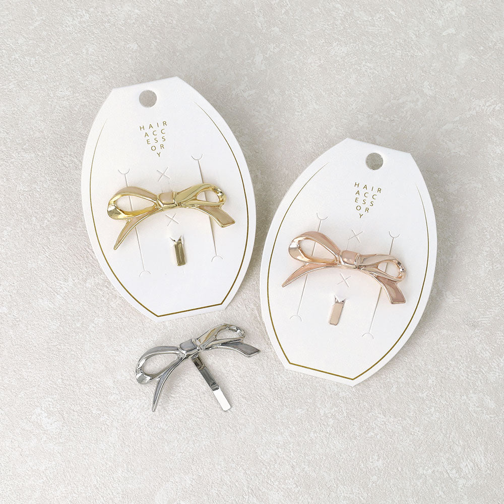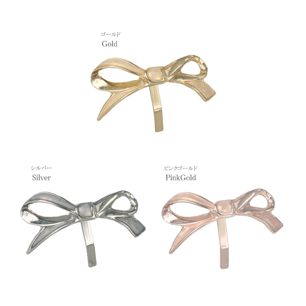 レディに仕上がる品の良さ。甘さひかえめなメタルのリボン、長く愛されるベーシックなデザイン。オールシーズン使えるメタルカラーで使い勝手◎