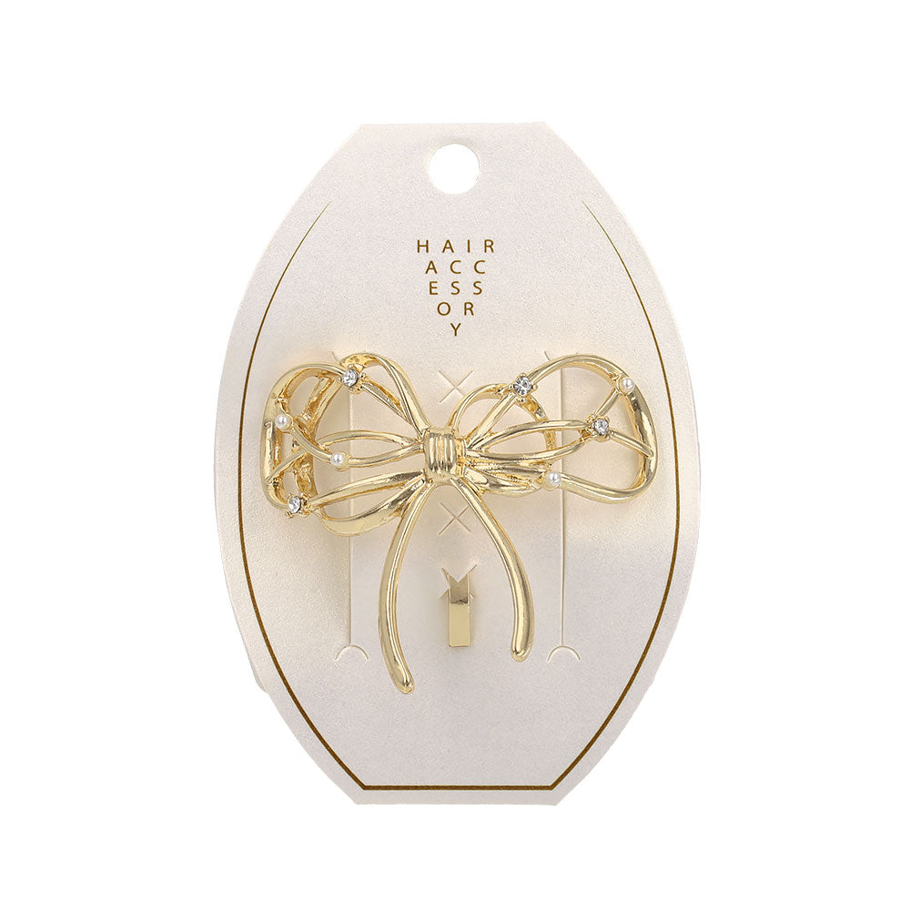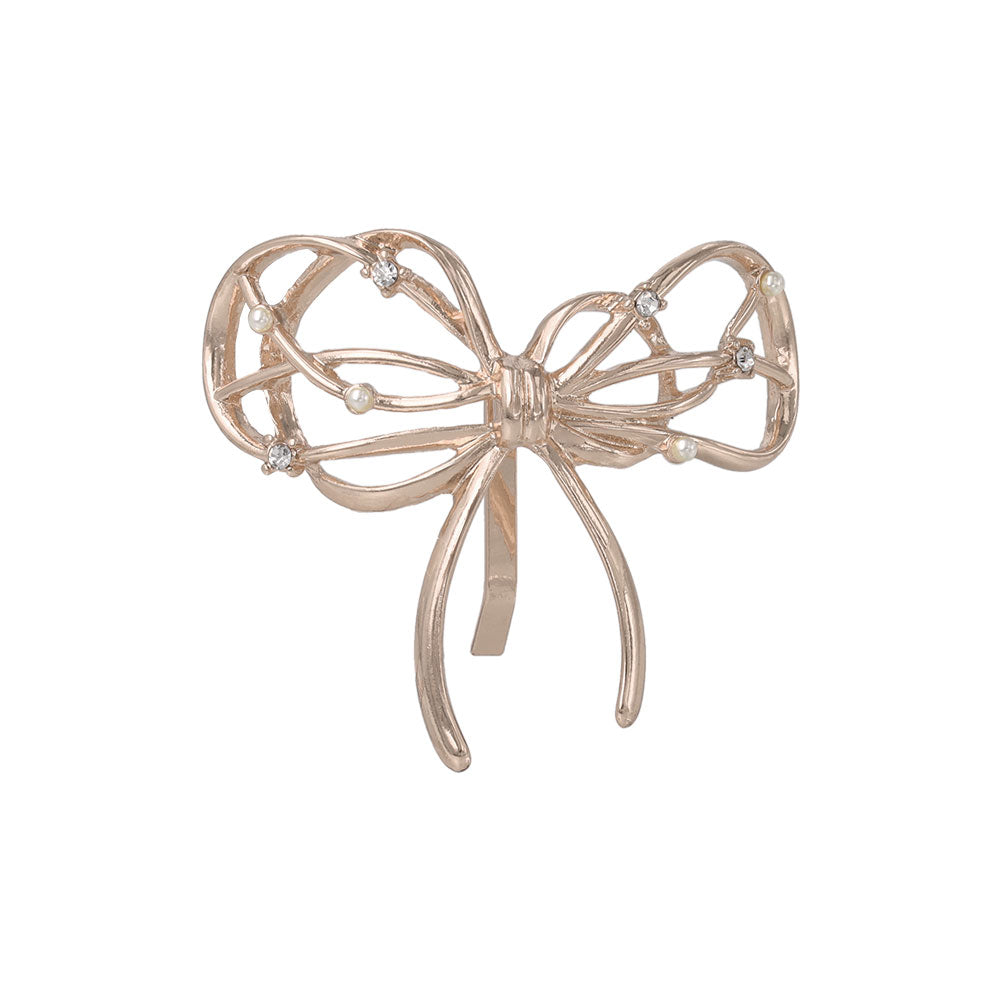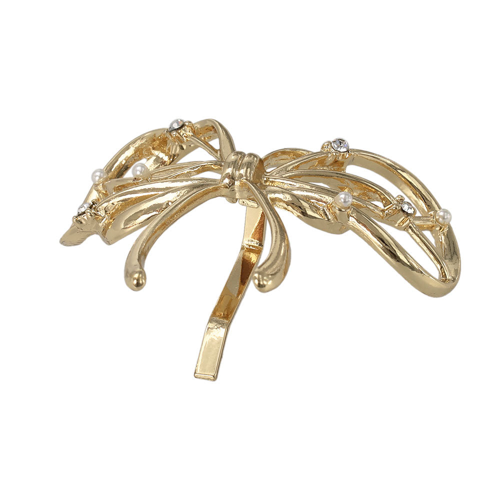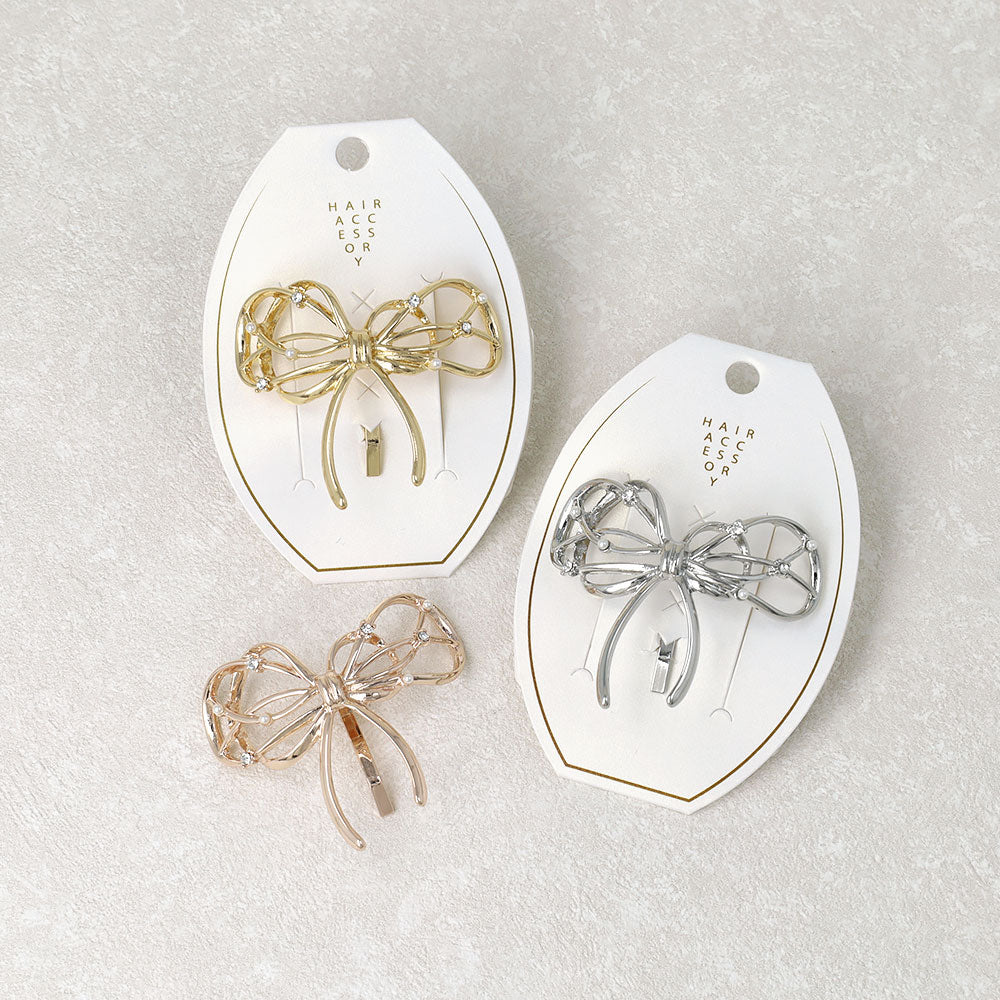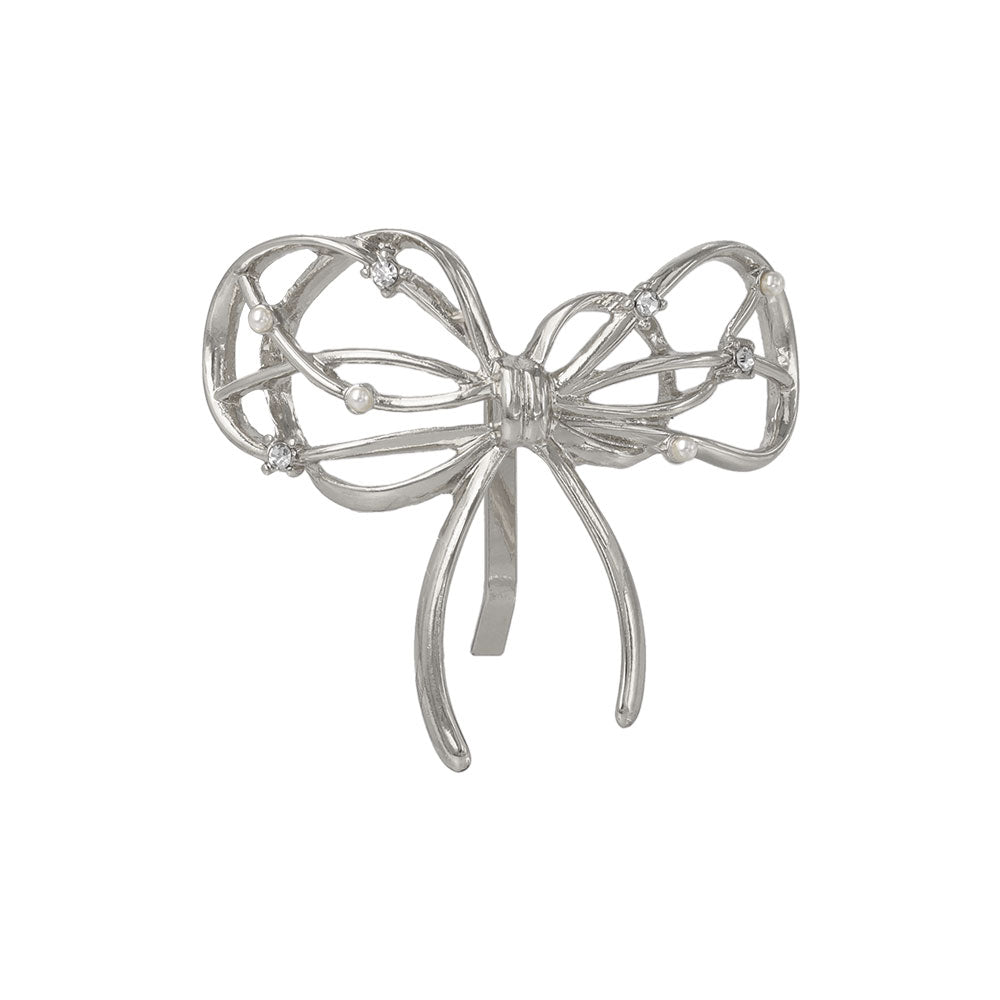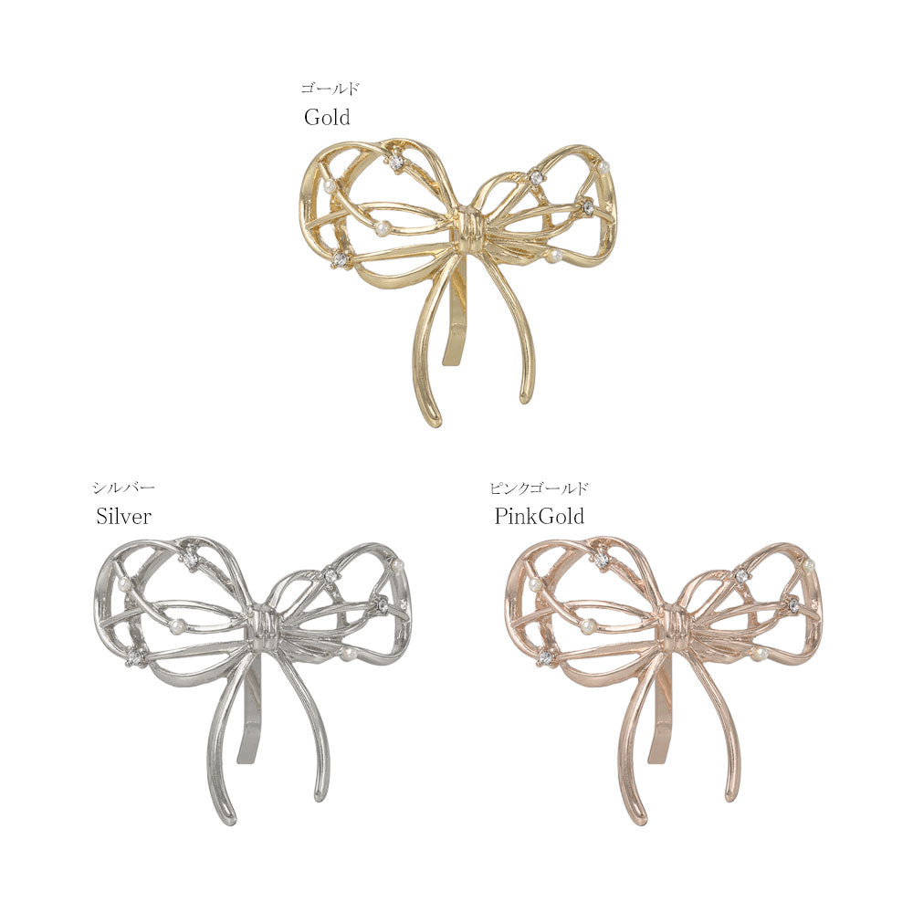 存在感もあってコーデ映え。レディに仕上がる品の良さ。甘さをひとさじくわえるのにちょうどいいリボンアイテム。オールシーズン使えるメタルカラーで使い勝手◎