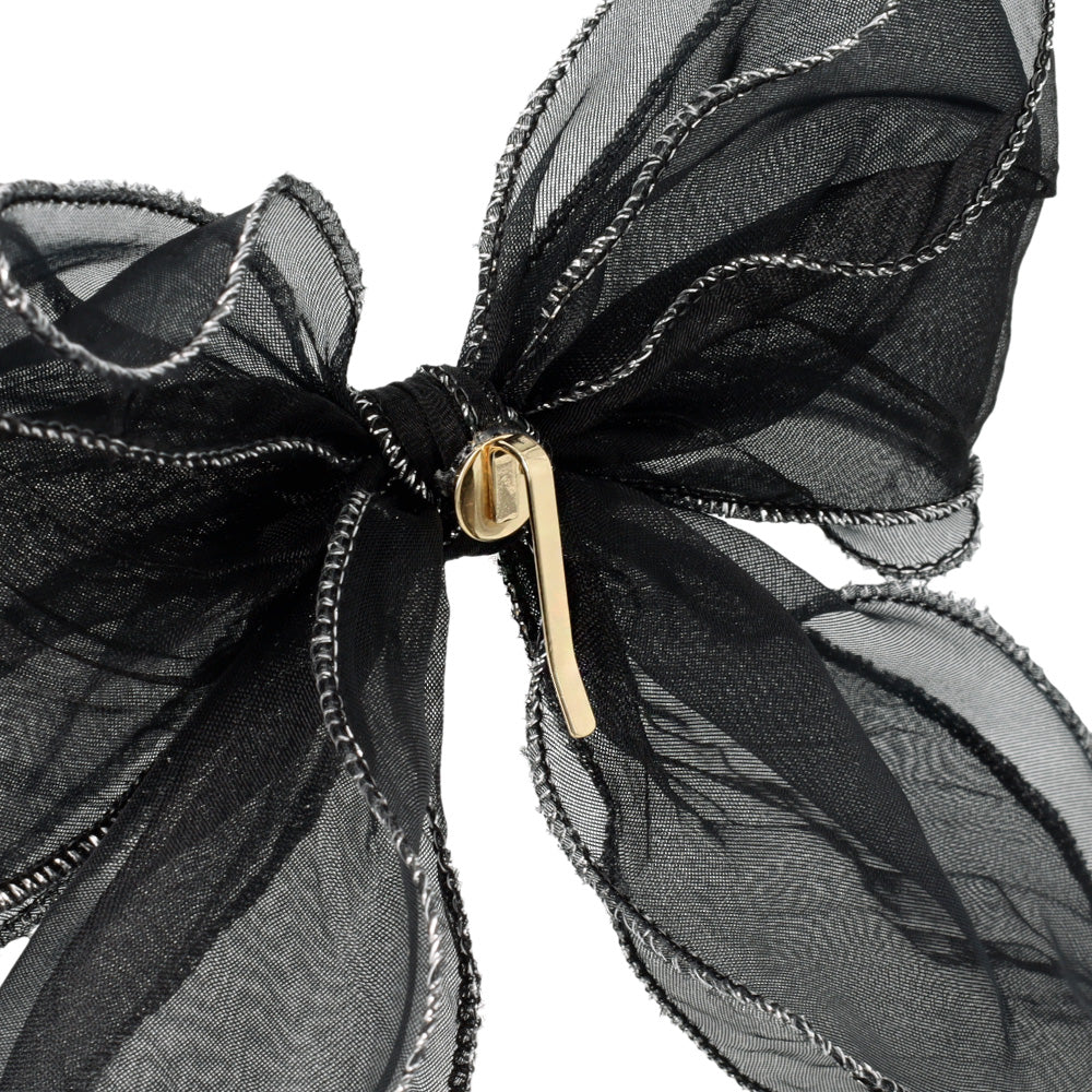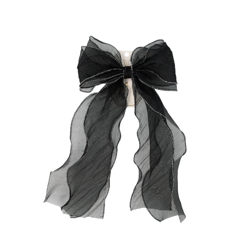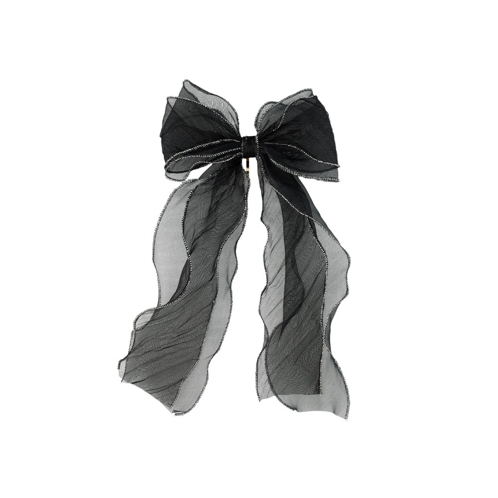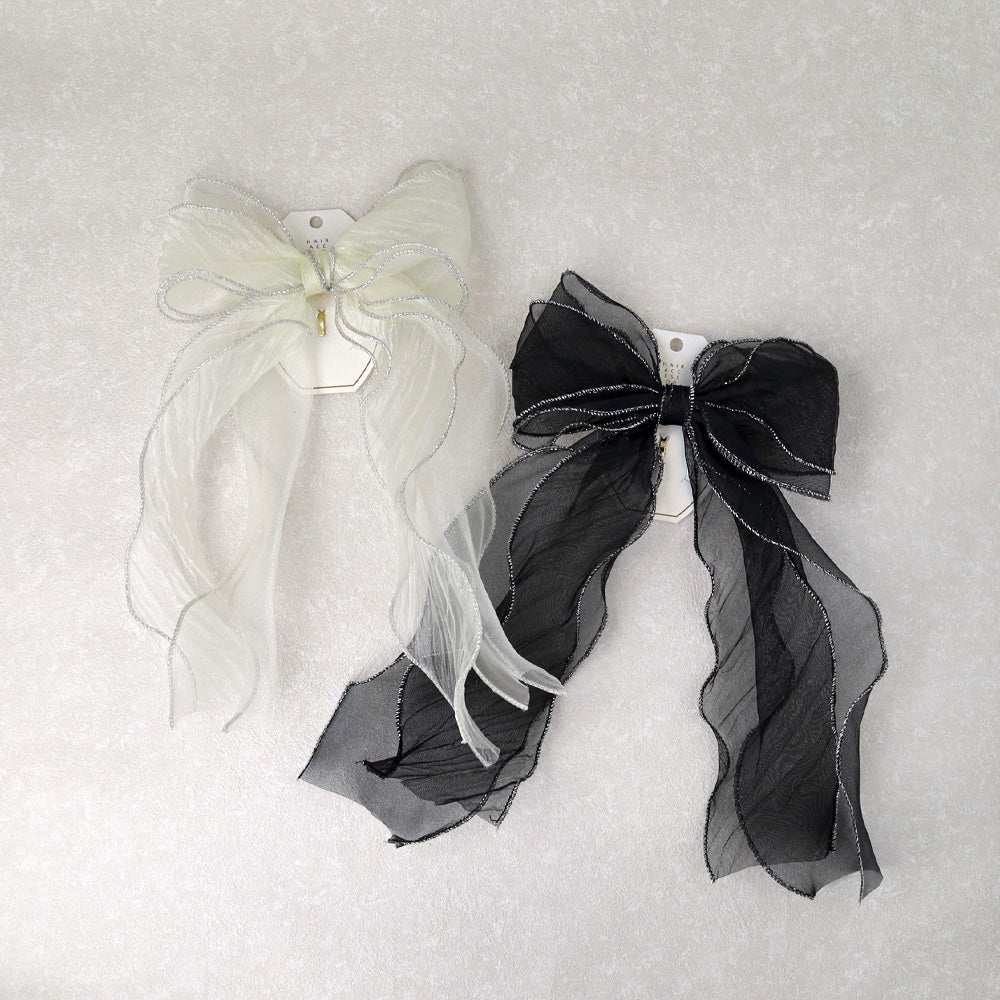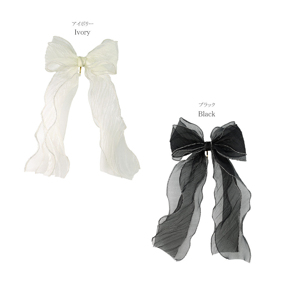 ヘアカフ シアー パイピング ダブルロングリボン ラメ糸