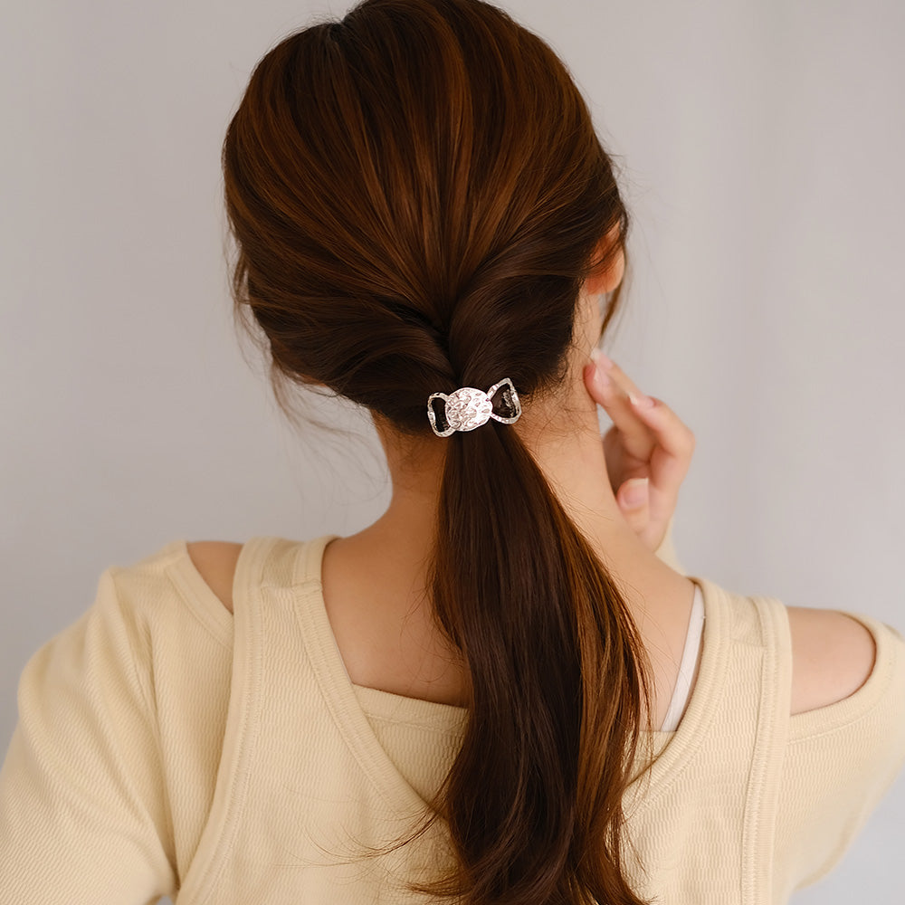 簡単きれいにまとまるマグネットタイプのヘアカフ。モチーフを広げてヘアゴムの結び目にピンを挿し、そのまま髪を覆うように巻けば完成です。ゴムの結び目が見えないのでキレイな仕上がりに。