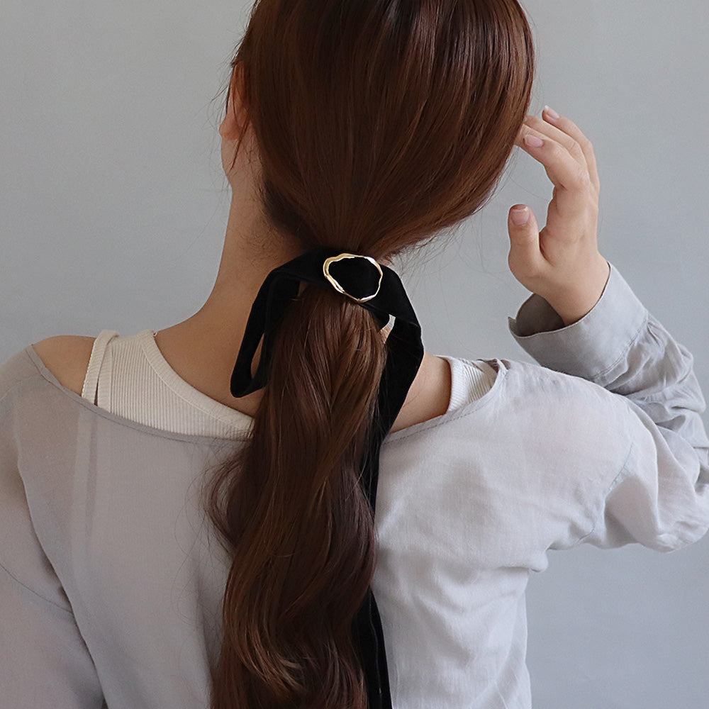 ヘアカフ リボンテープ ベロア メタル オーバル