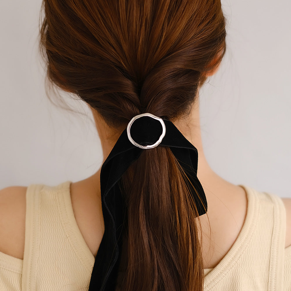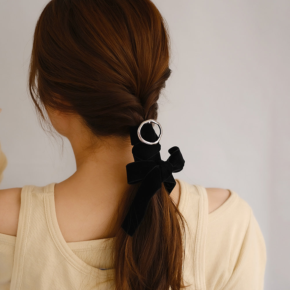 hc0731使い勝手のよいブラックカラーで幅広いコーデと相性抜群、かわいく盛れるリボンテープと大人の上品さをプラスするメタルのヘアカフのセット。
