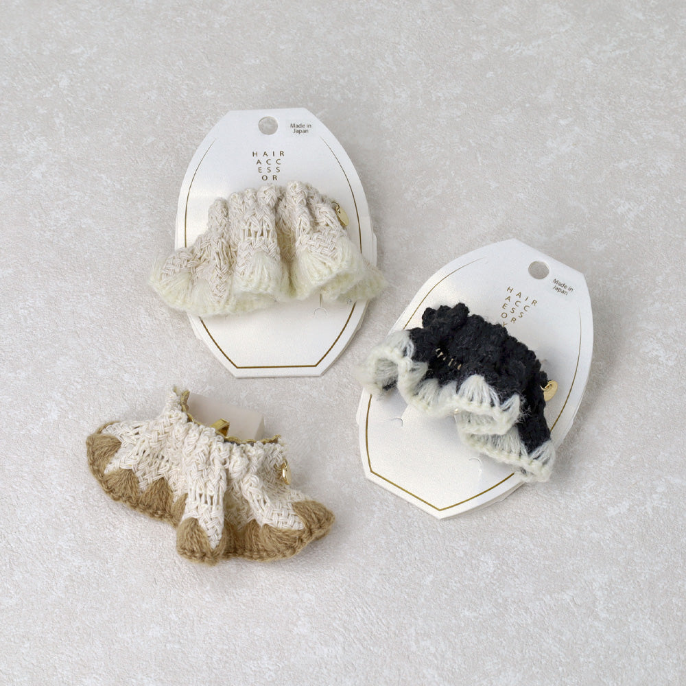 hc0732ニットの柔らかなフリルがやさしい印象のヘアカフ。