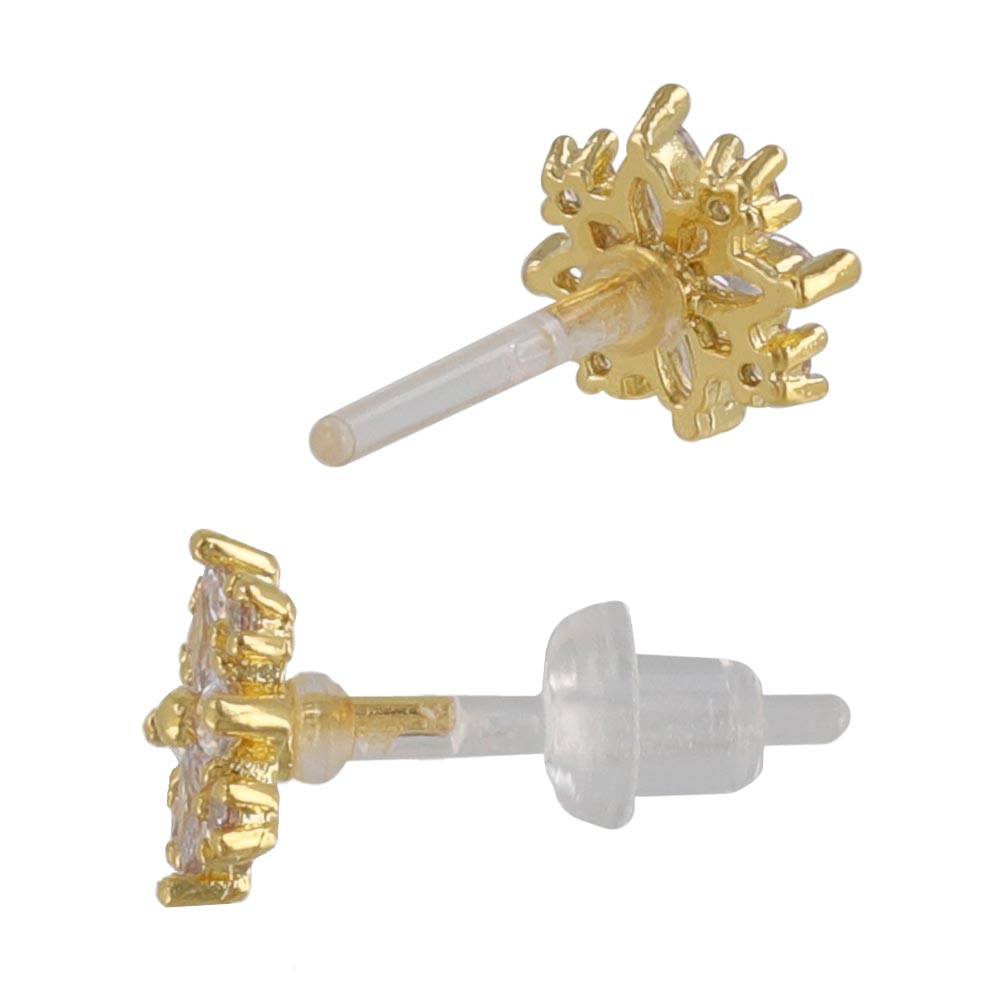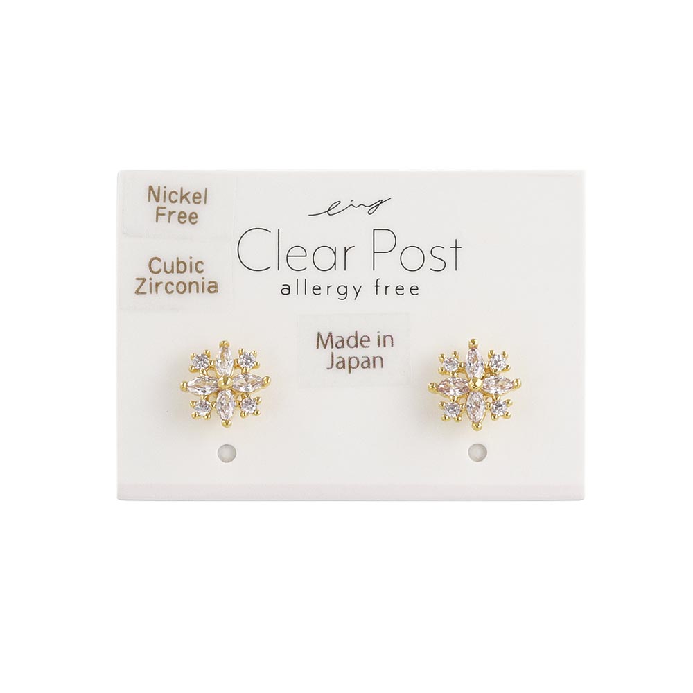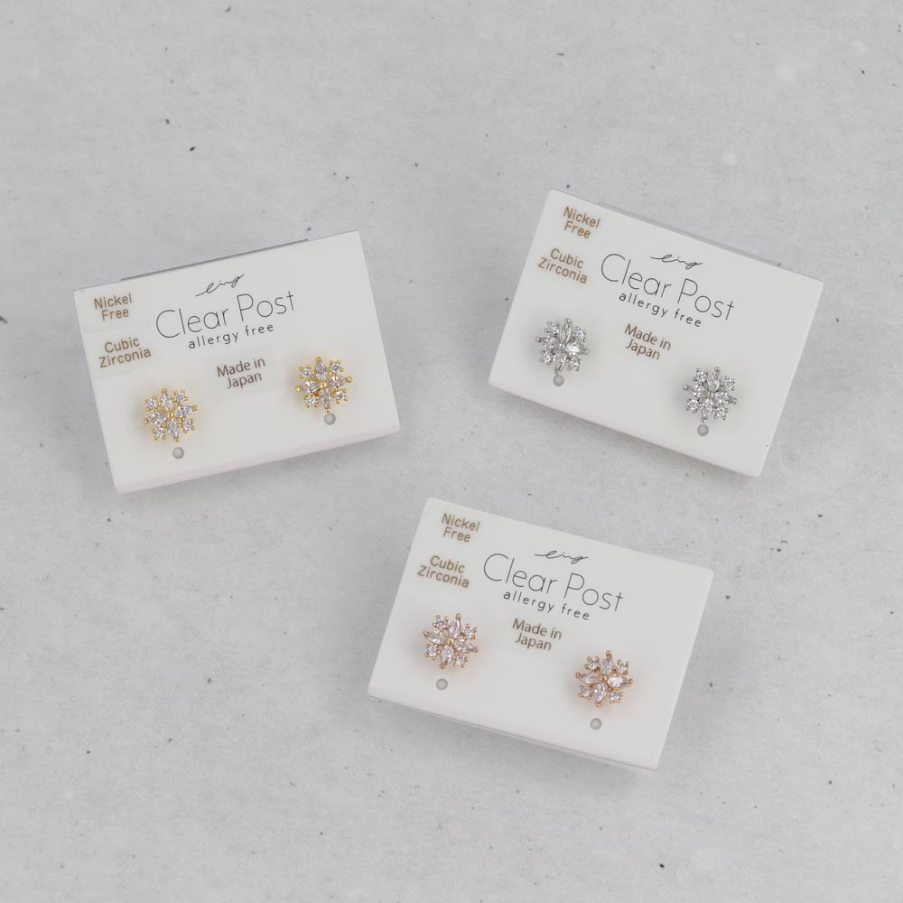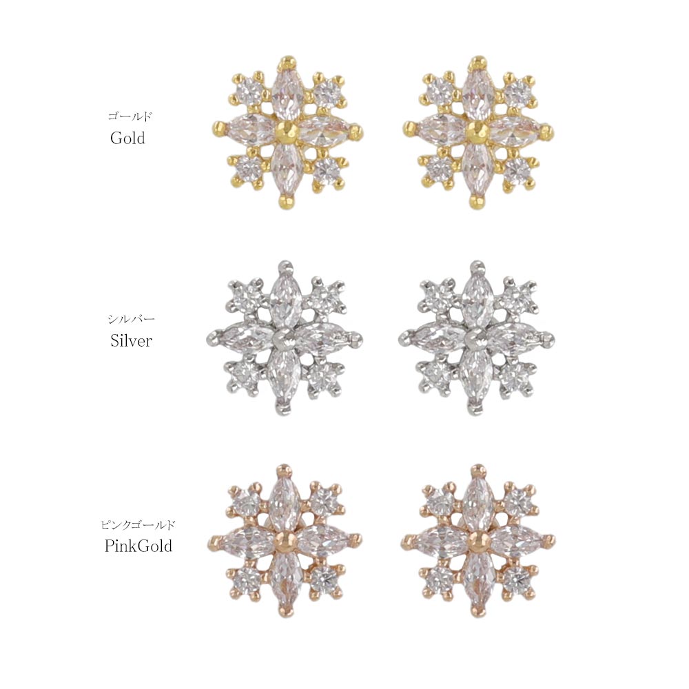 樹脂ピアス ニッケルフリー メタル キュービックジルコニア ミニ スノークリスタル 雪の結晶 スタッドピアス