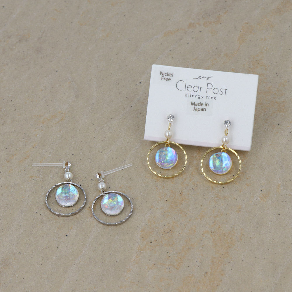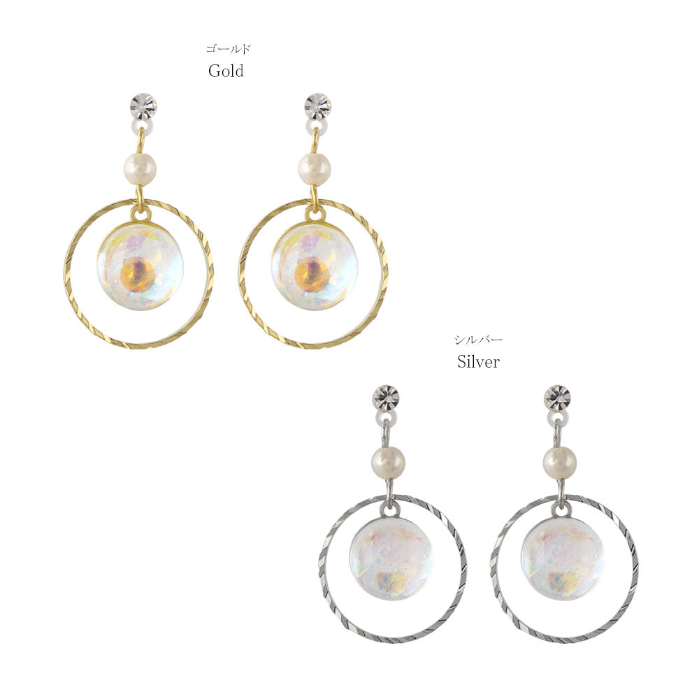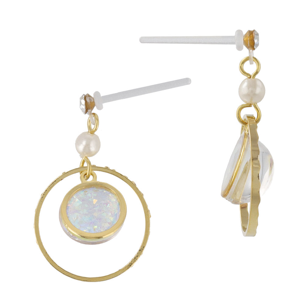 樹脂ピアス ニッケルフリー メタル リング サークル オーロラ カラー ストーン パール スタッドピアス
