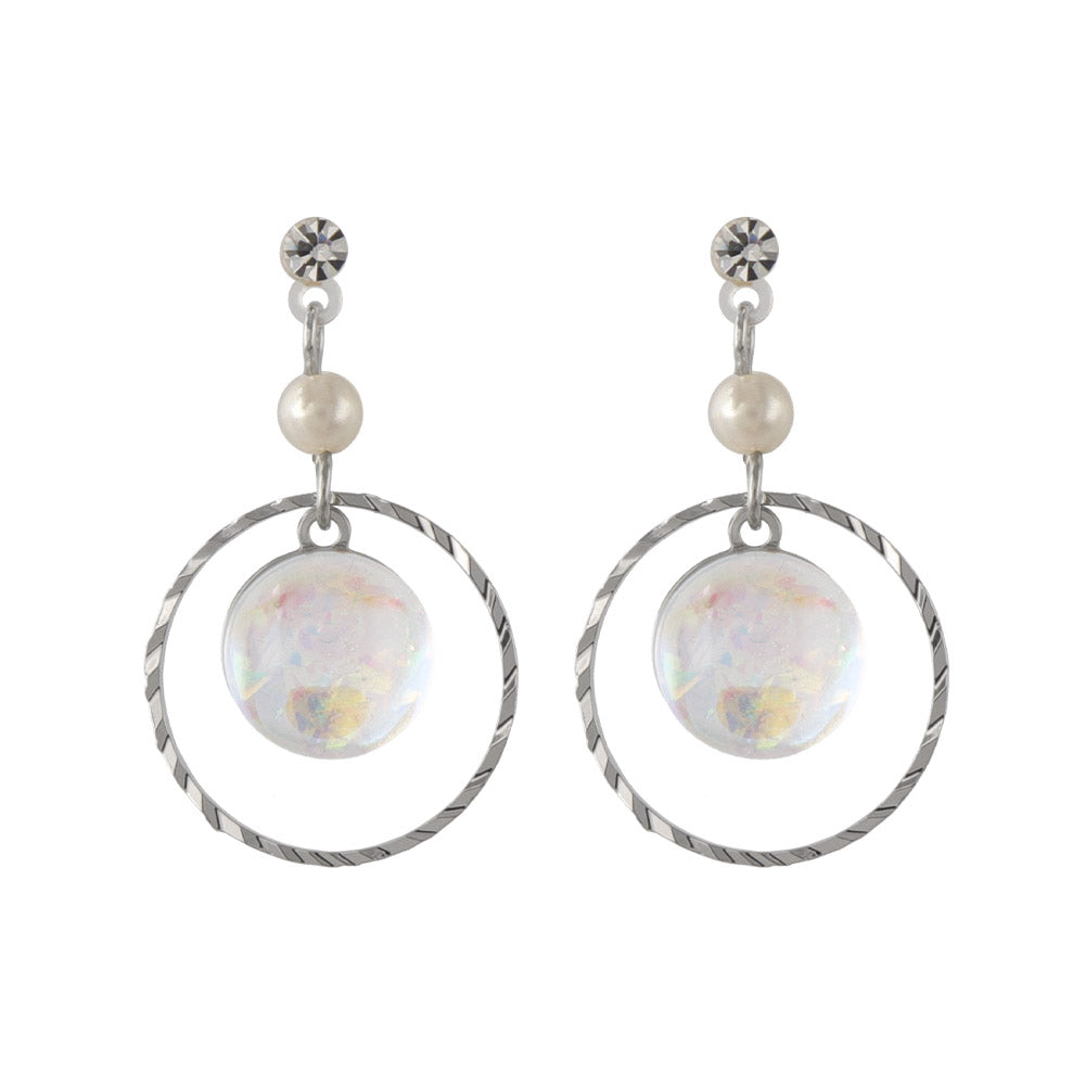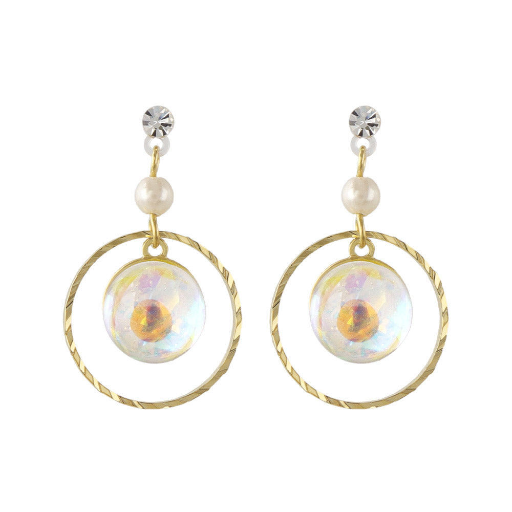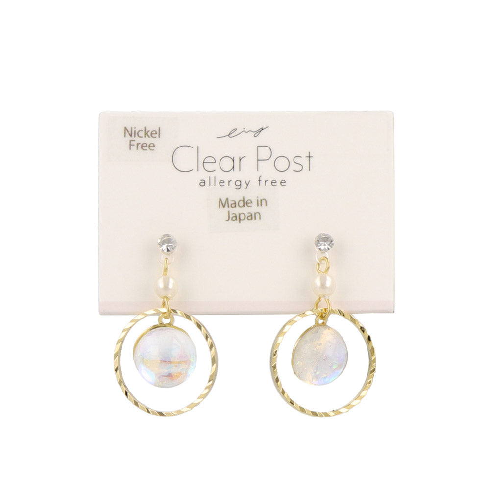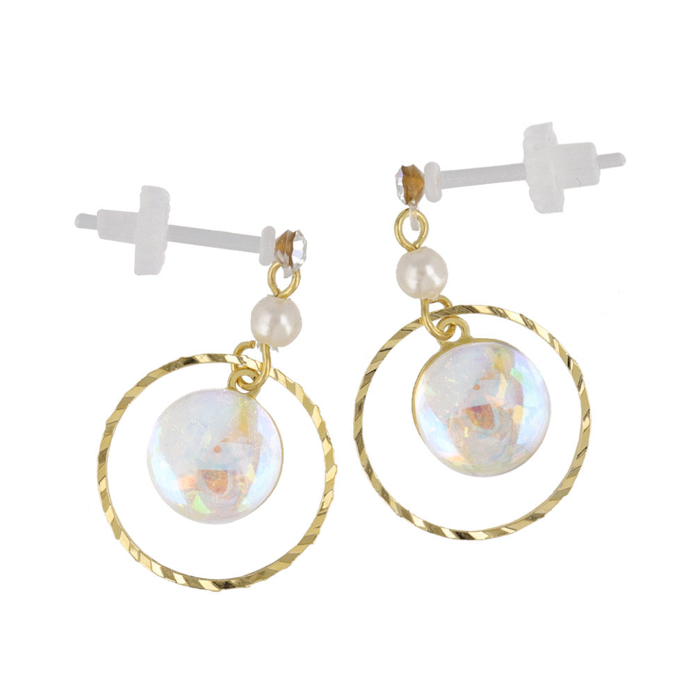 樹脂ピアス ニッケルフリー メタル リング サークル オーロラ カラー ストーン パール スタッドピアス