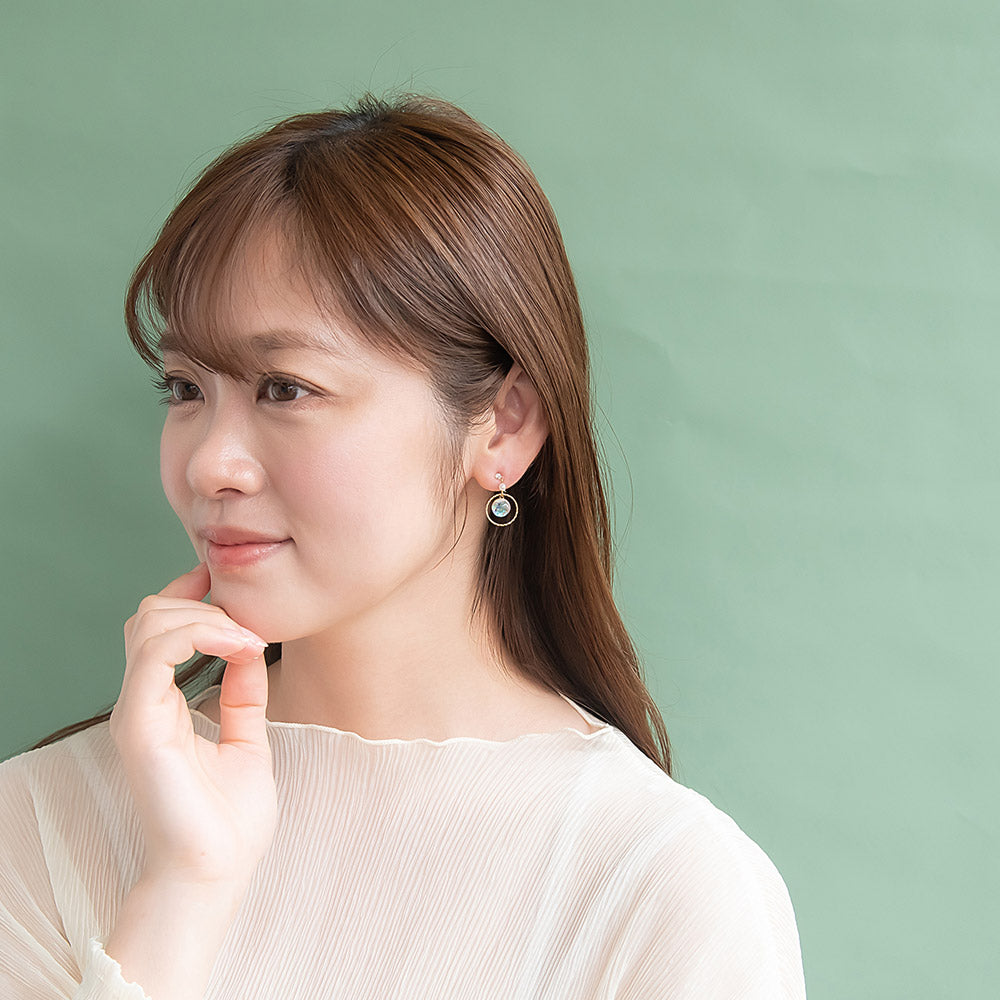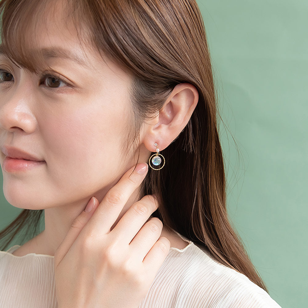 jp0709ほんのり色づく耳元、キレイ色のオーロラカラーが映えるピアス。爽やかさと絶妙なしゃれ感をプラス。