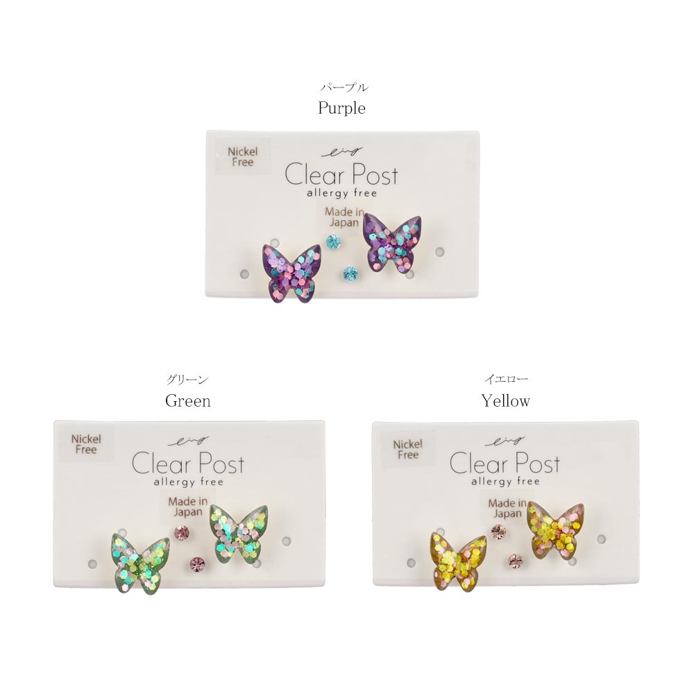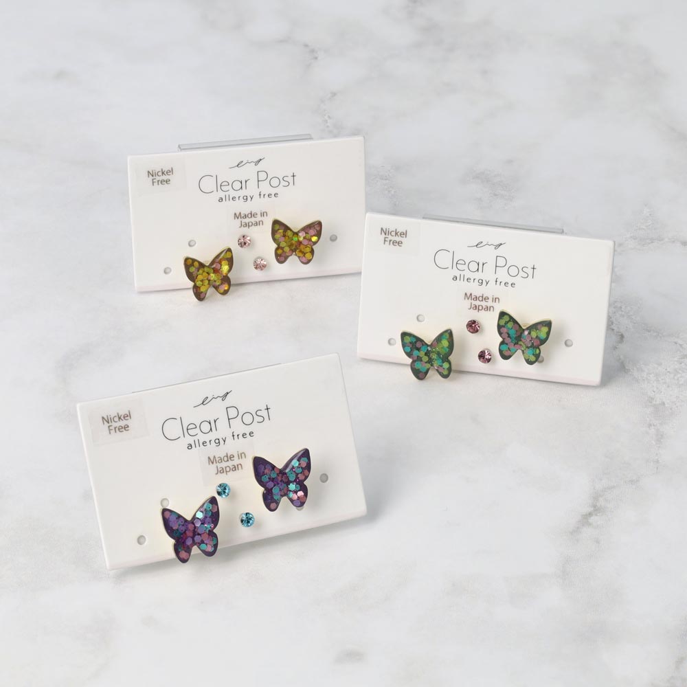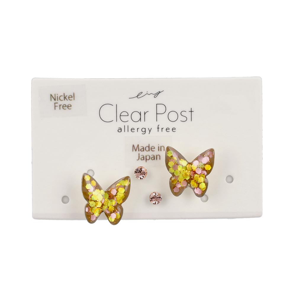 樹脂ピアス ニッケルフリー バタフライ ラメ 4個セット スタッドピアス