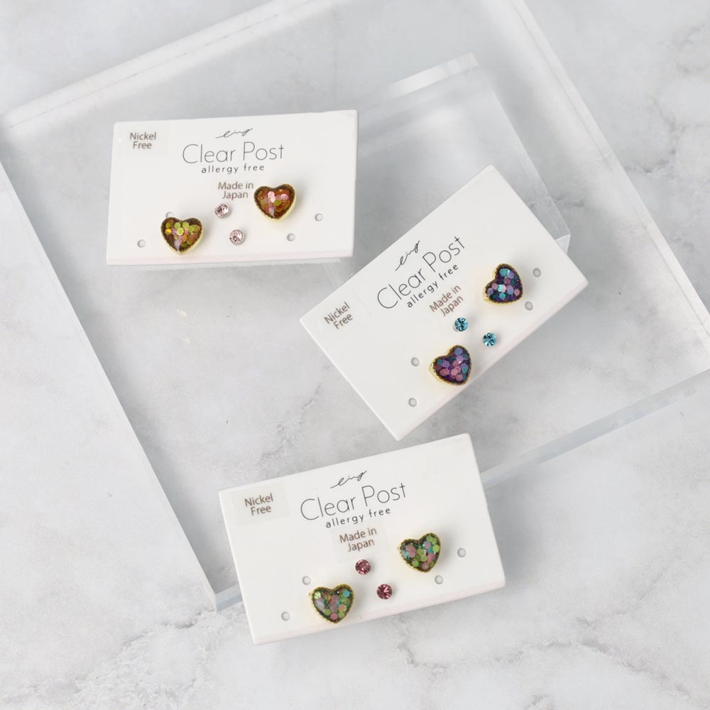 樹脂ピアス ニッケルフリー ハート ラメ カラフル 4個セット スタッドピアス