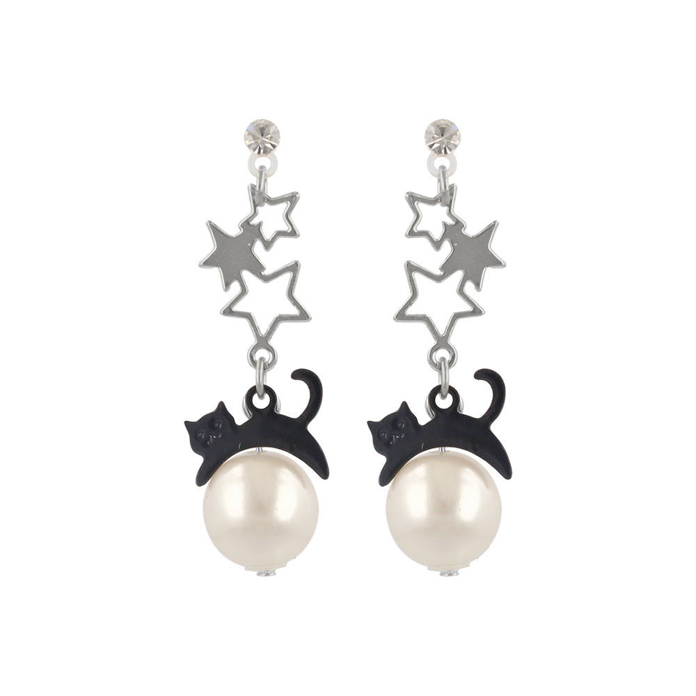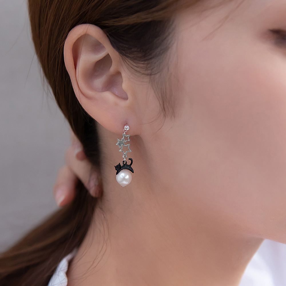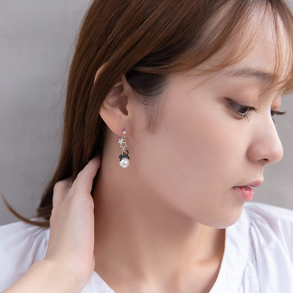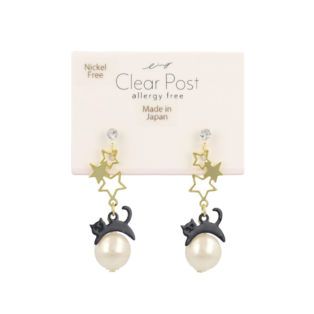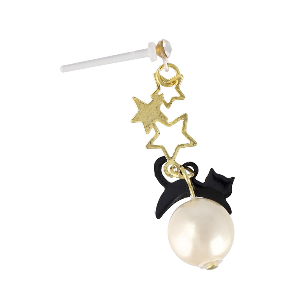 樹脂ピアス ニッケルフリー ネコと月 スタッドピアス