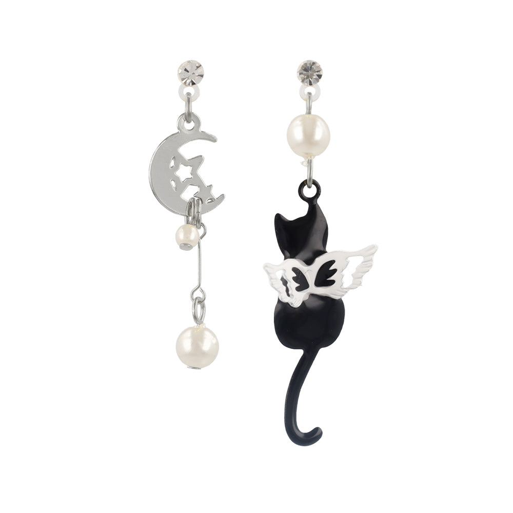 樹脂ピアス ニッケルフリー ネコと月 スタッドピアス