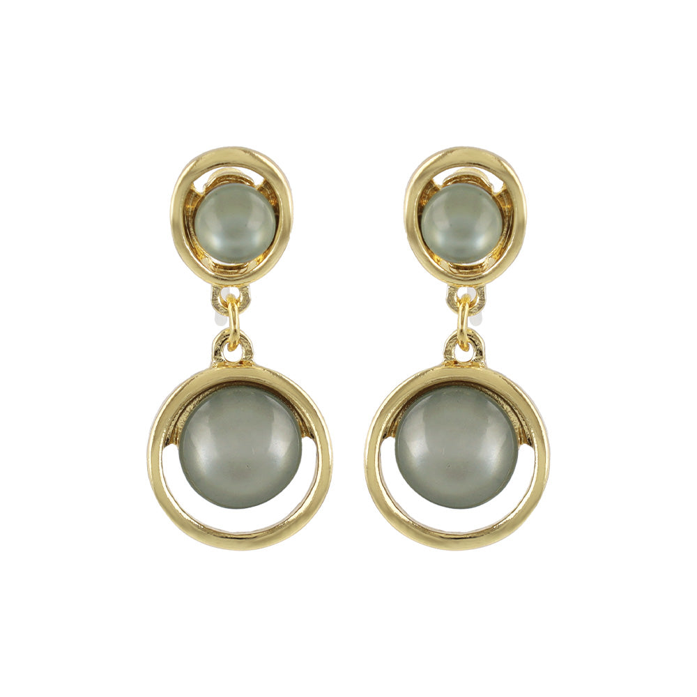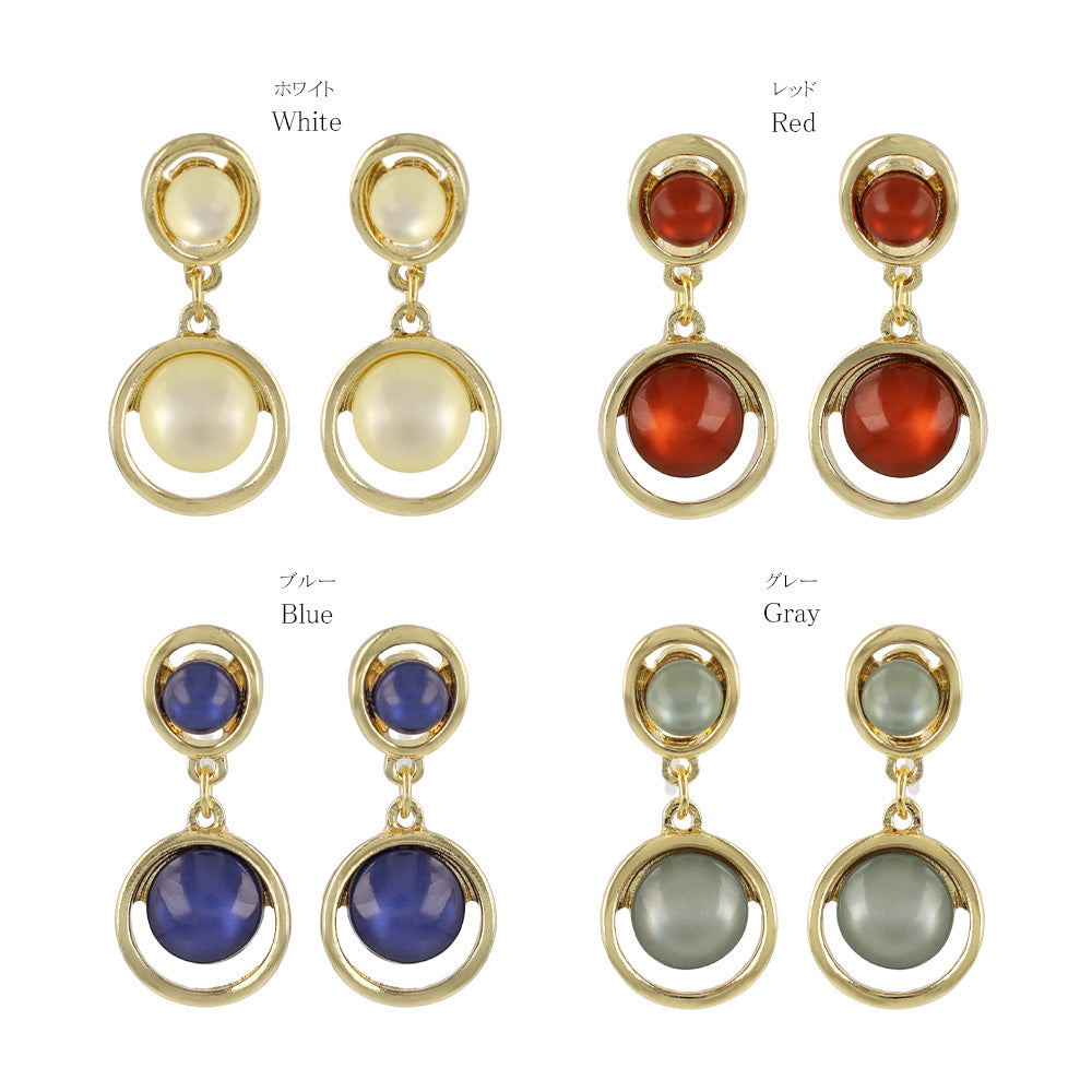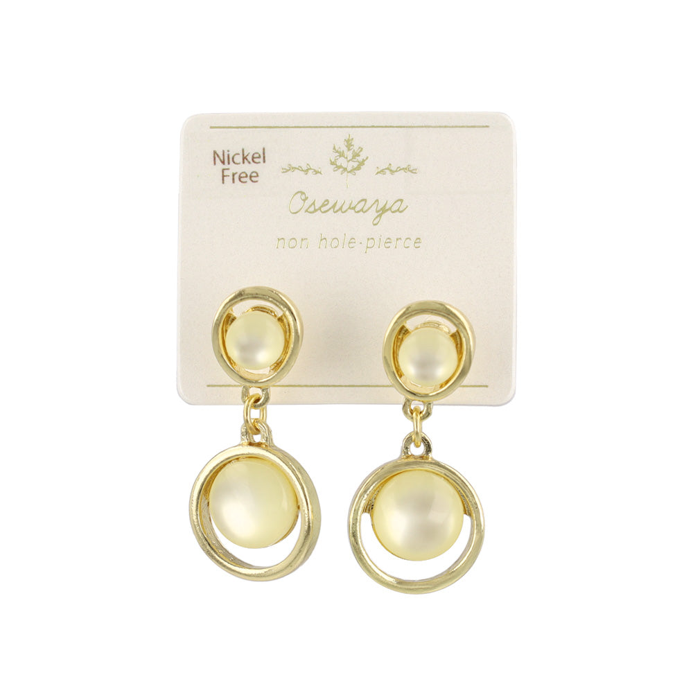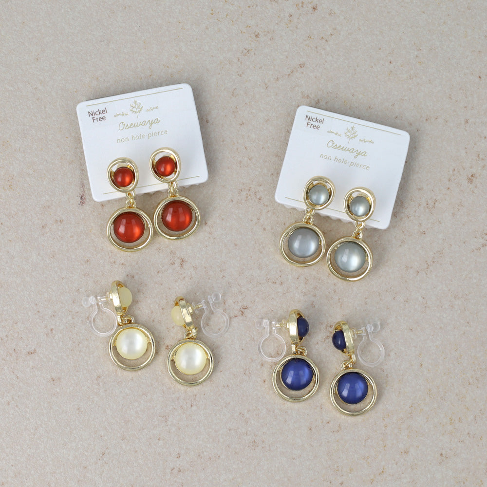 ノンホールピアス ニッケルフリー メタル フレーム カラー ダブル サークル イヤリング 樹脂タイプ