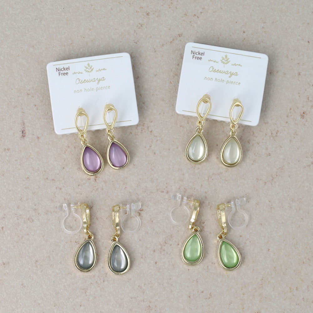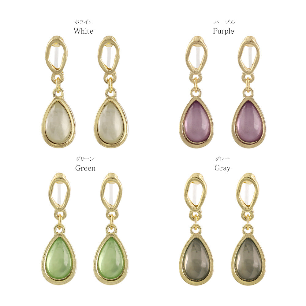 ノンホールピアス ニッケルフリー メタル フレーム カラー ドロップ イヤリング 樹脂タイプ