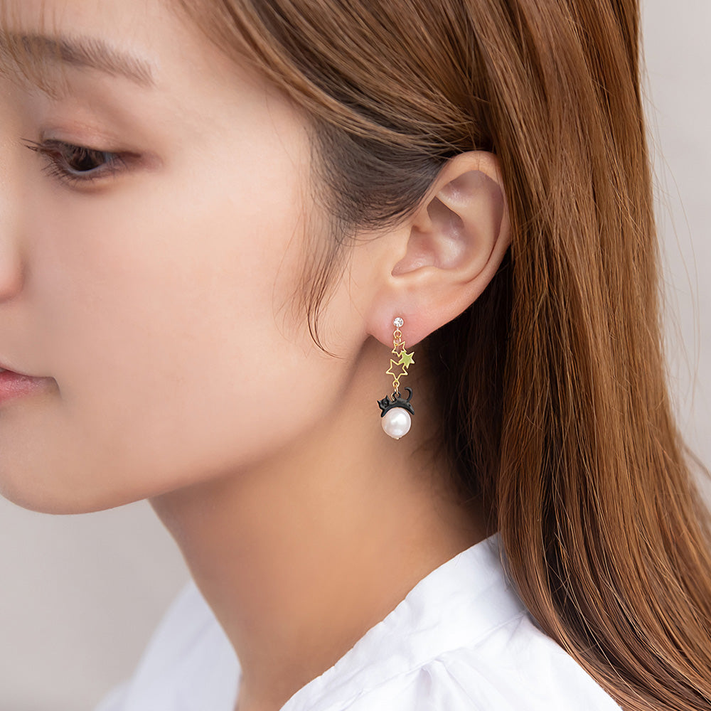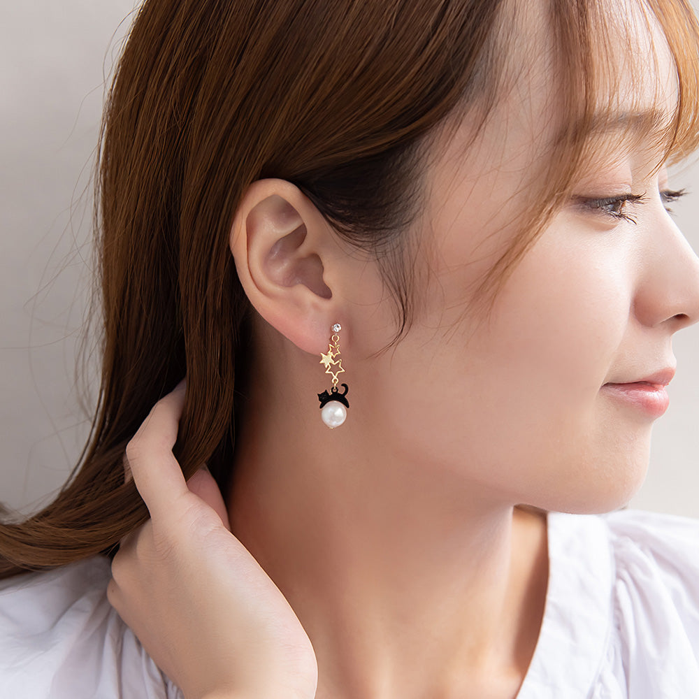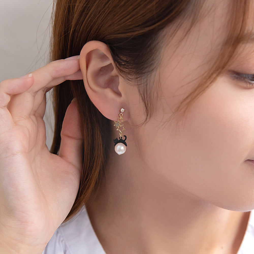 ノンホールピアス ニッケルフリー ネコと星 イヤリング 樹脂タイプ