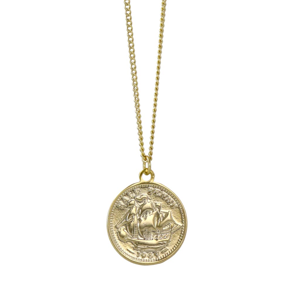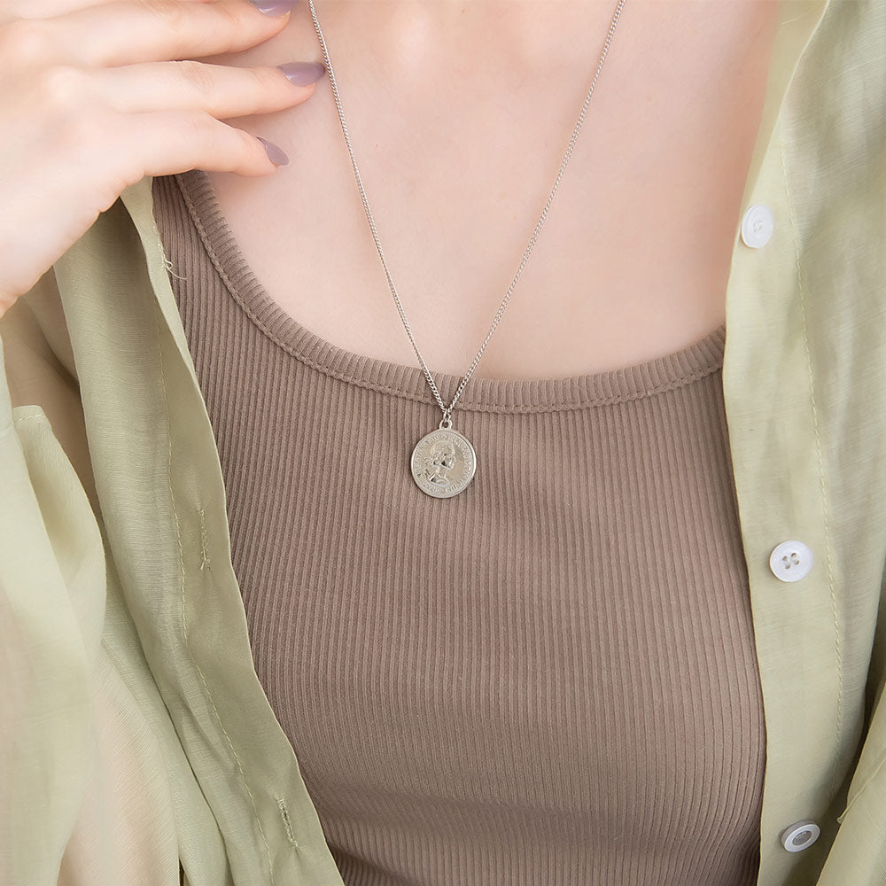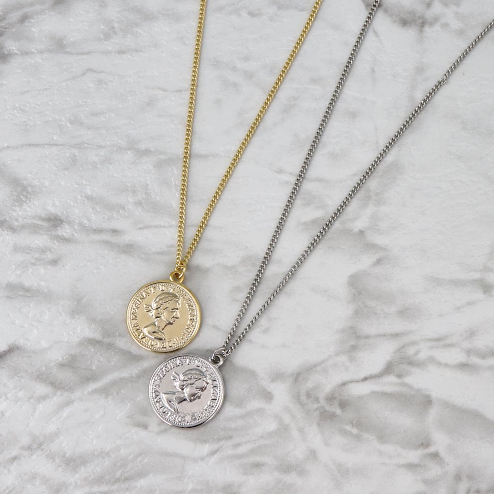 nk1069お守りとしても人気のコインモチーフが付いたメタルのチェーンネックレス。