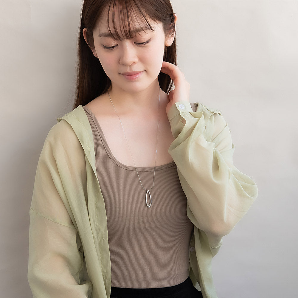 メタル素材ながら柔らかさを感じるなめらかなデザインが美しく、シンプルなコーディネートに大人な上品さをプラスしてくれます。