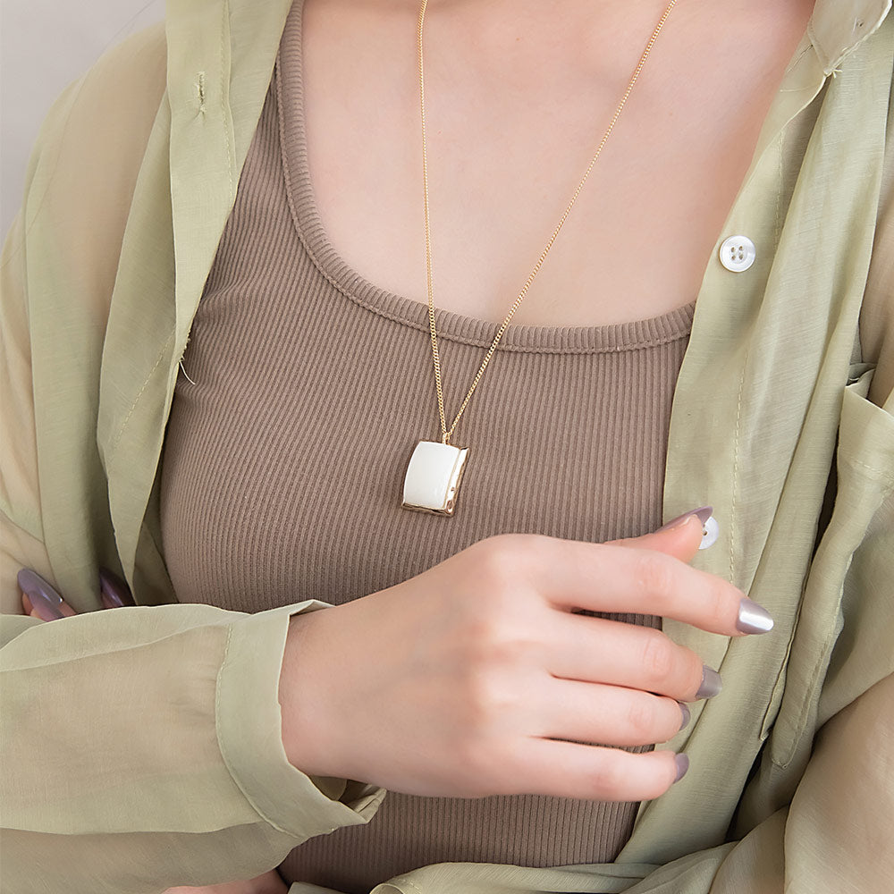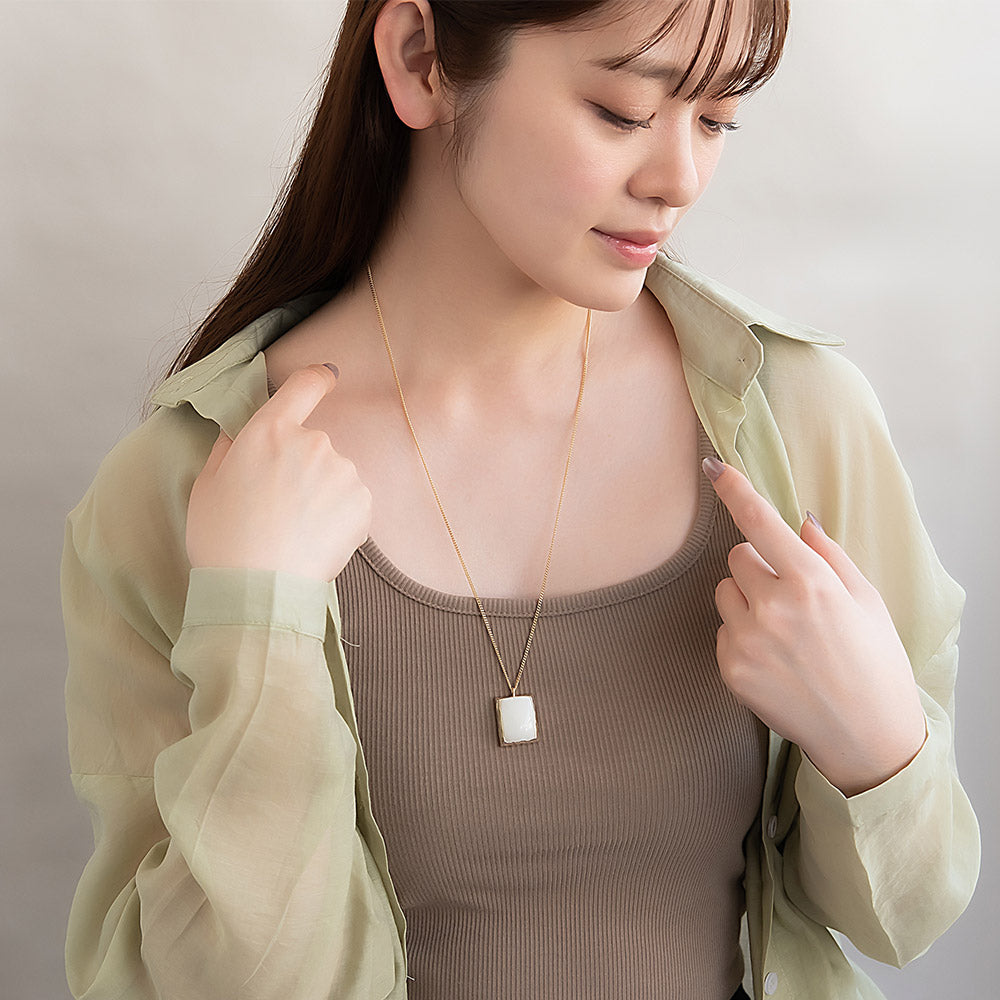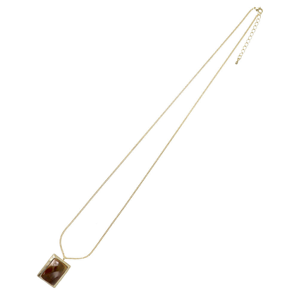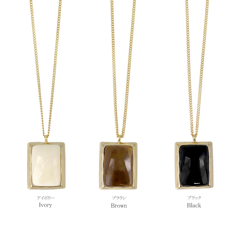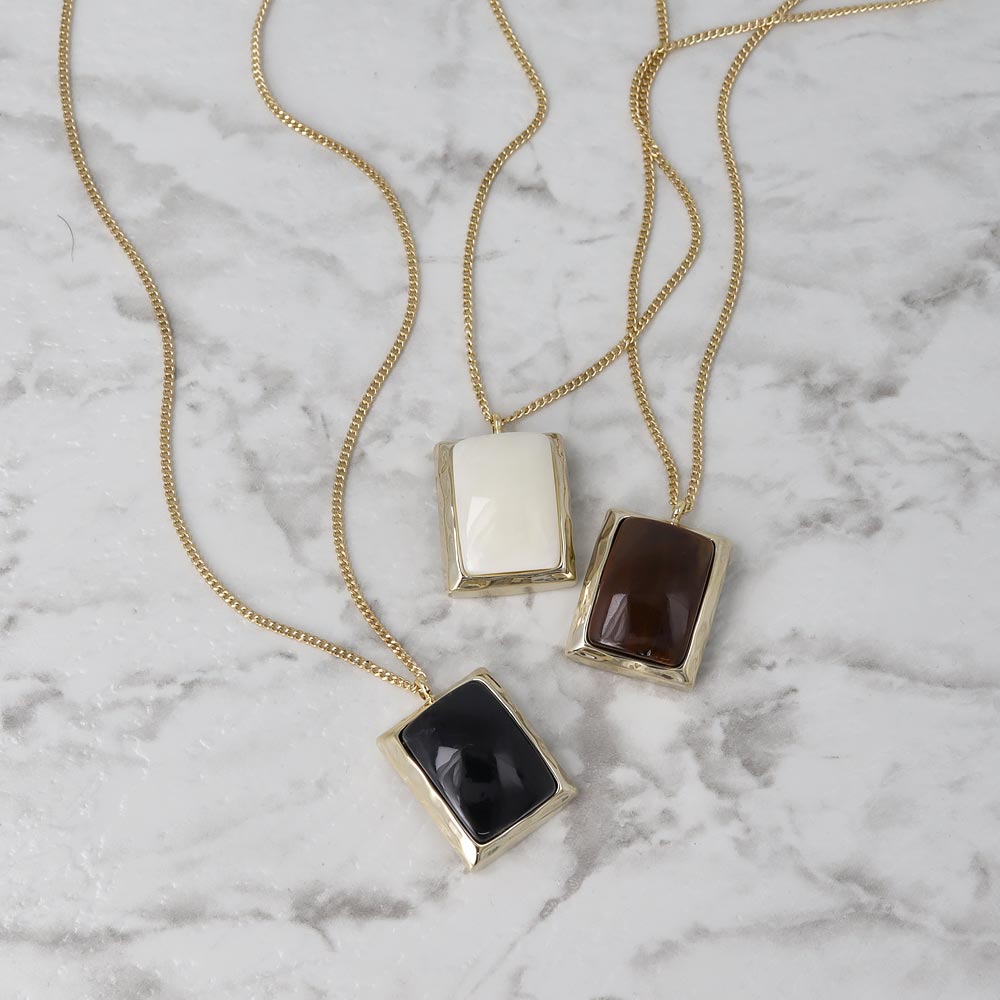 ネックレス ニッケルフリー メタル フレーム レクタングル マーブル カラー チェーン ペンダントネックレス