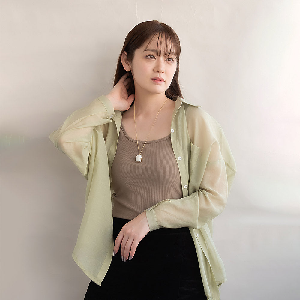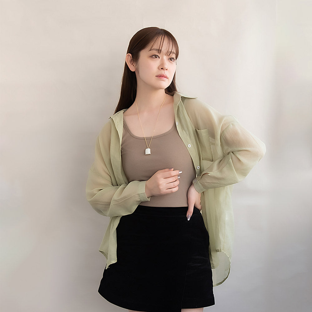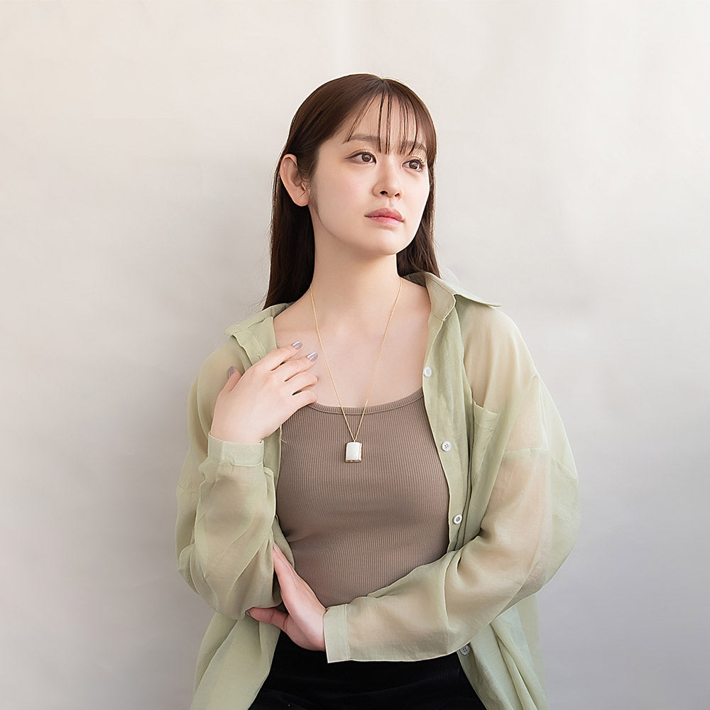 胸元に品のある大人な印象を添えて、ワンランク上のコーディネートに。