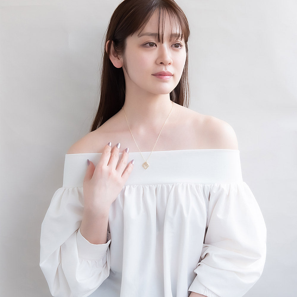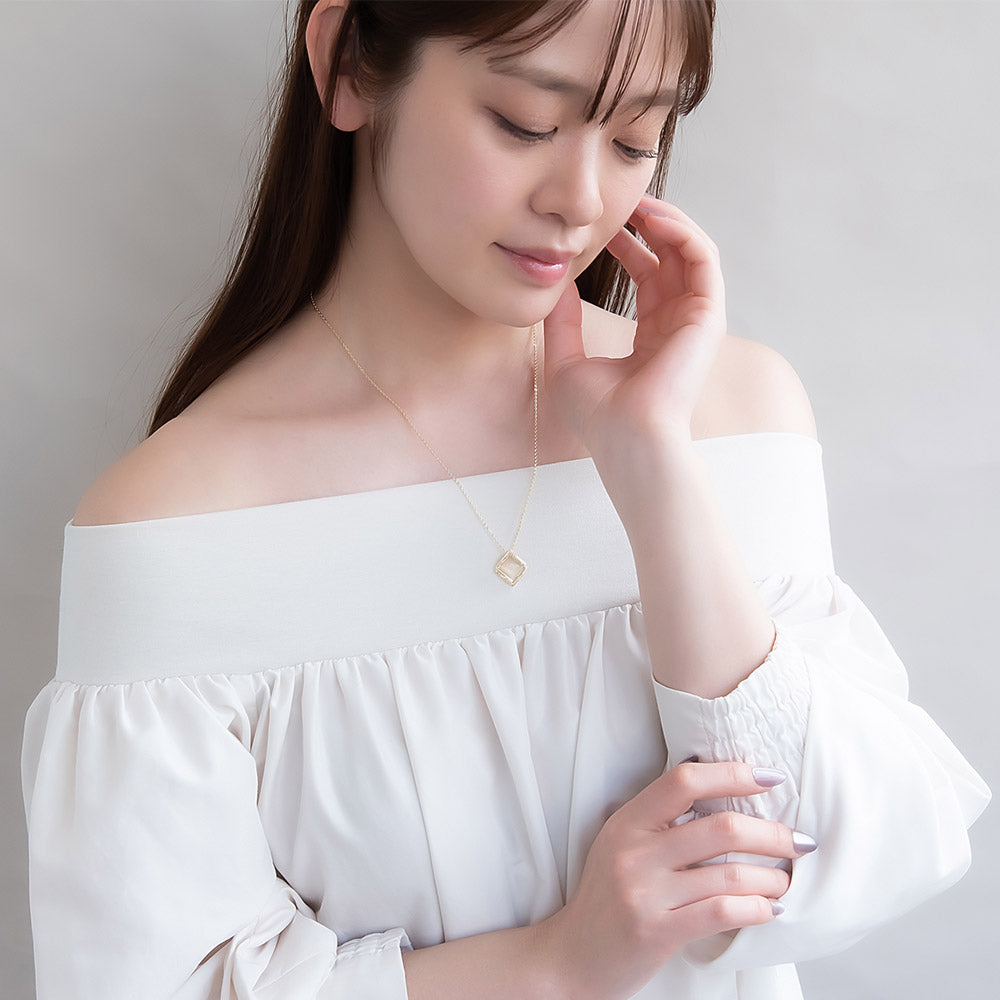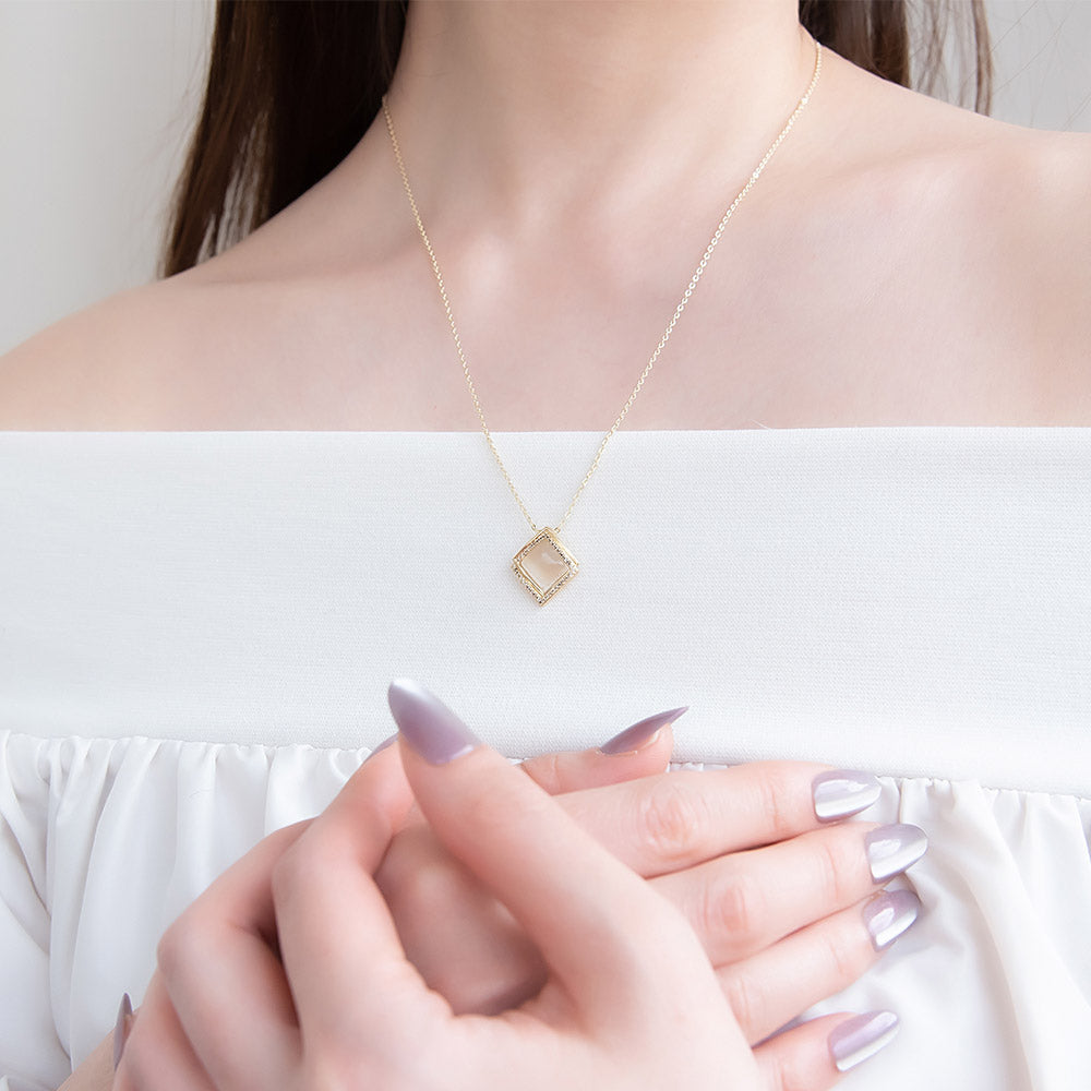 ネックレス ニッケルフリー メタル 合成キャッツアイ キュービックジルコニア スクエア フレーム チェーン ペンダントネックレス