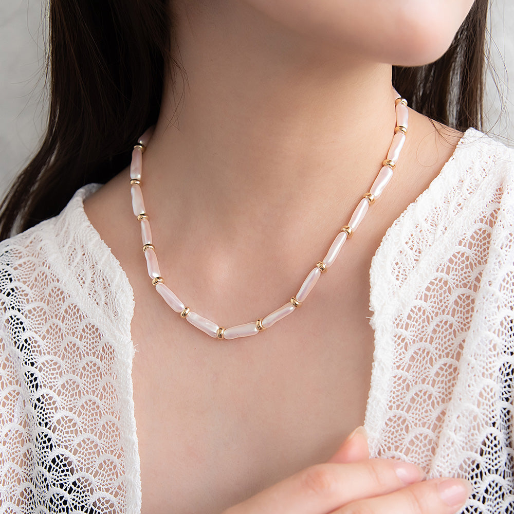 nk1115変形パールxメタルパーツのネックレス。シンプルな1連なので単品にも重ね付けにも◎