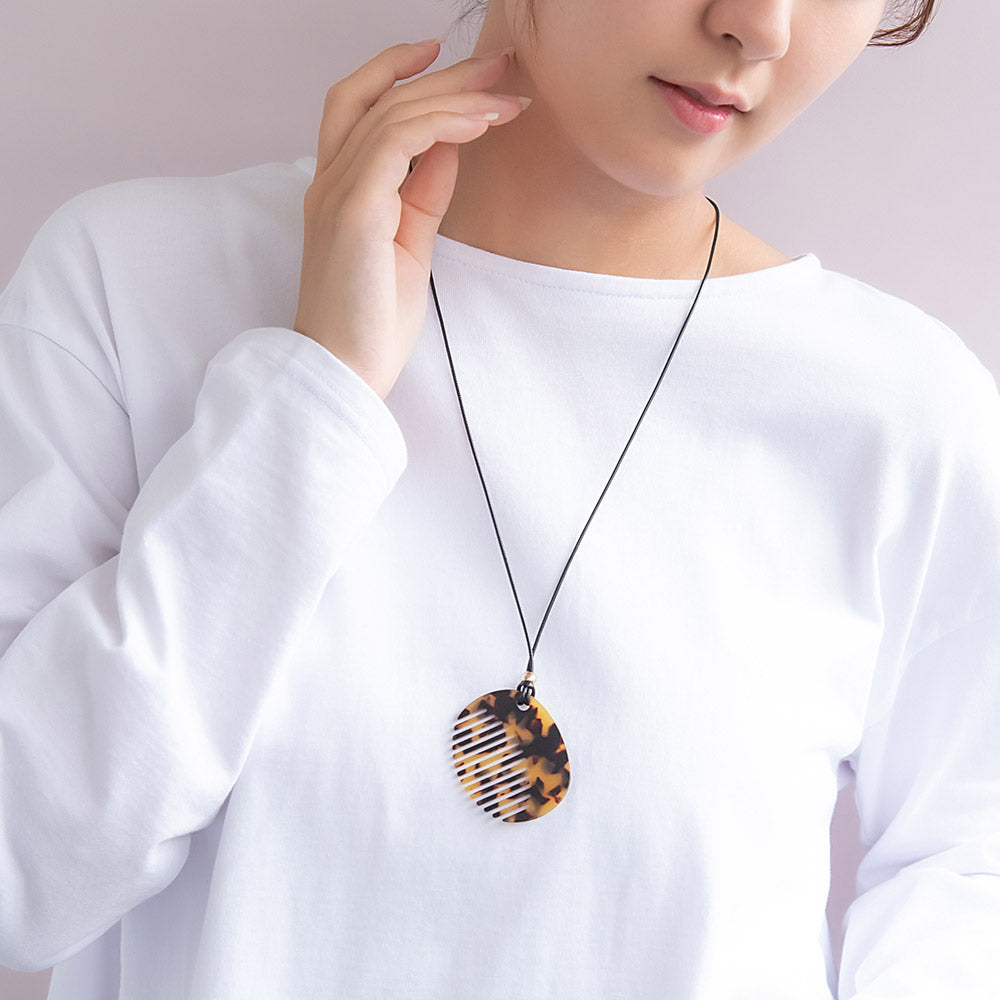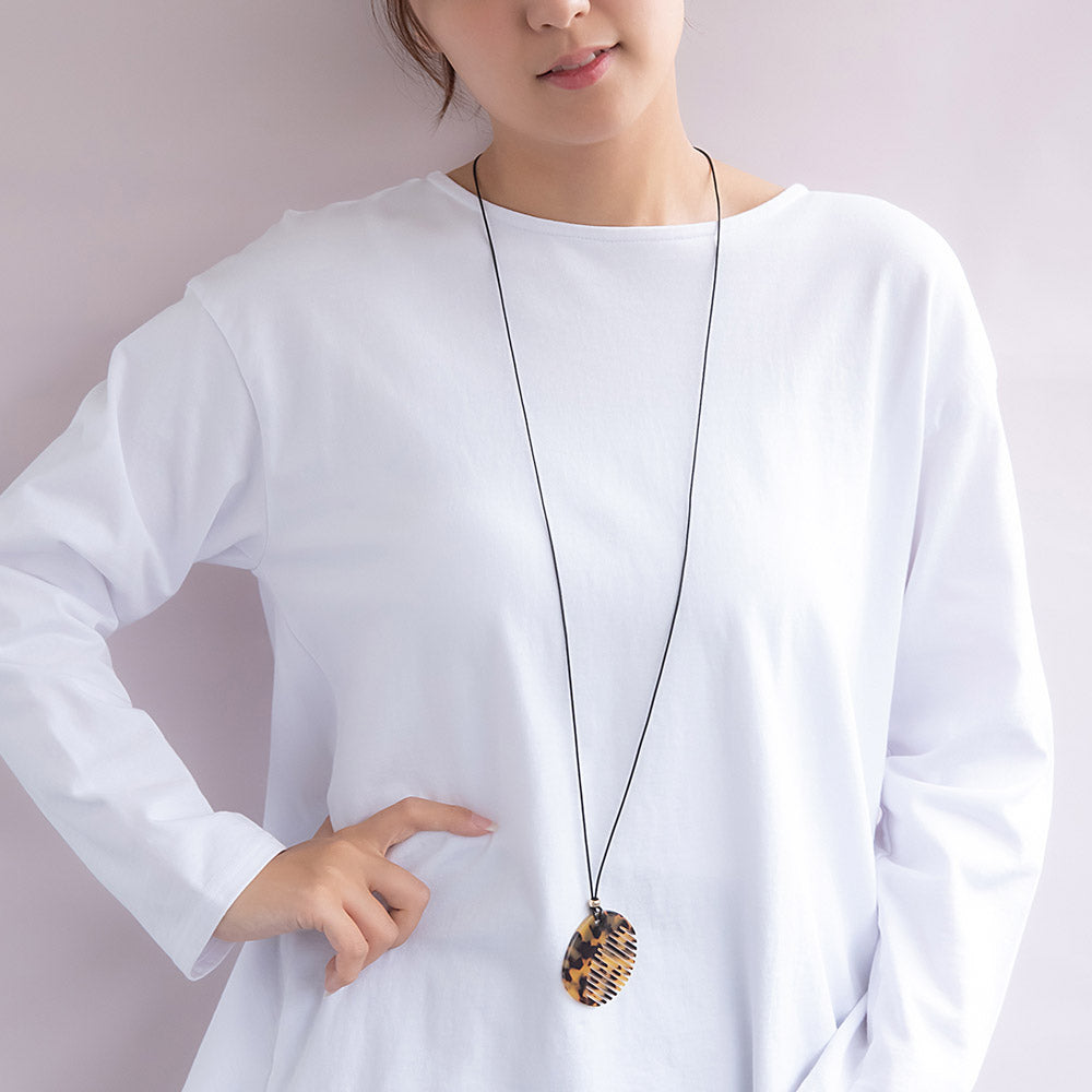 ネックレス オーバル コームモチーフ マーブルカラー ワックスコード ロングネックレス
