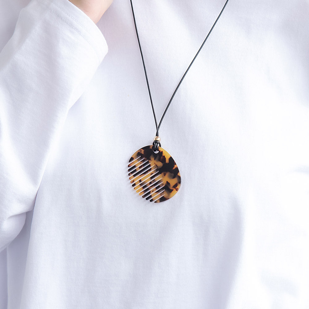 nk1118くし形モチーフがついたロングネックレス。珍しいデザインがコーディネートのアクセントに。
