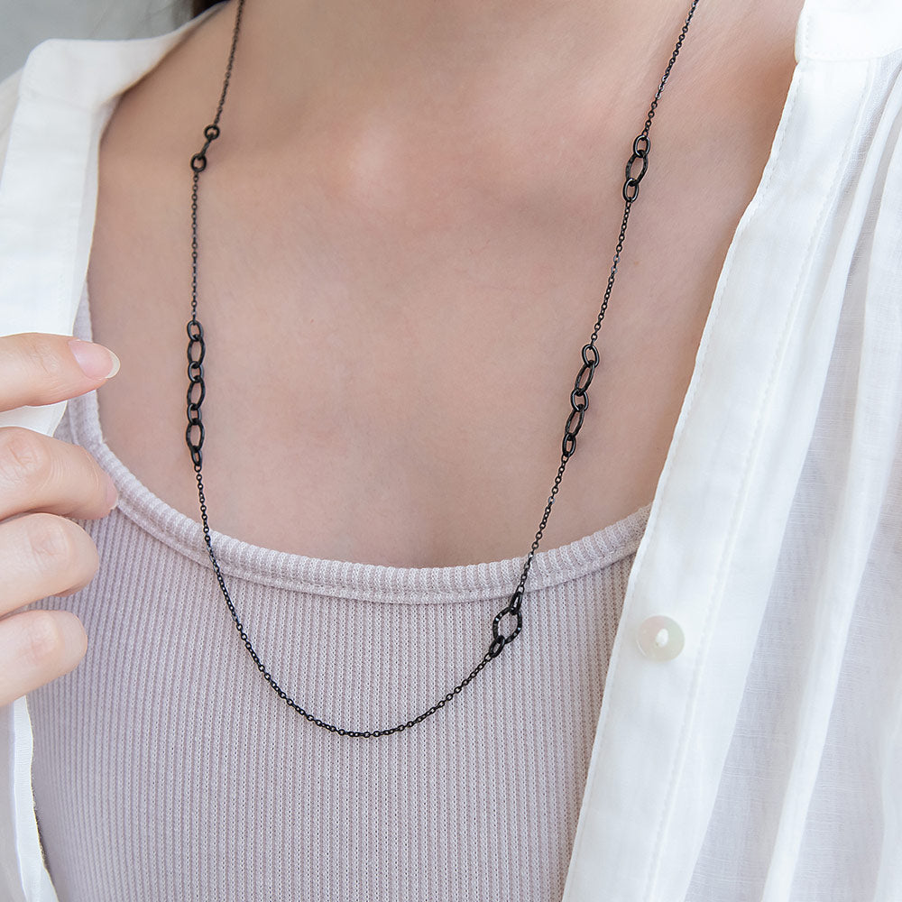 ネックレス ステンレス テクスチャー デザイン チェーン ロングネックレス