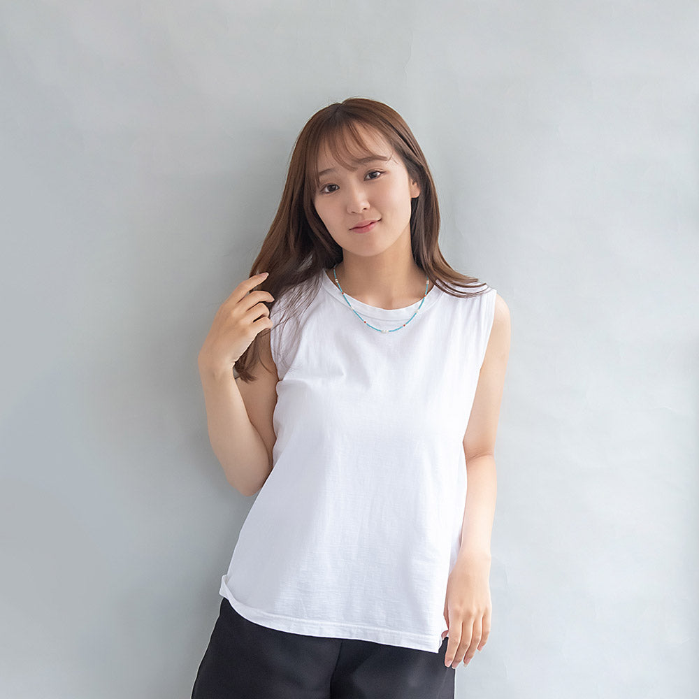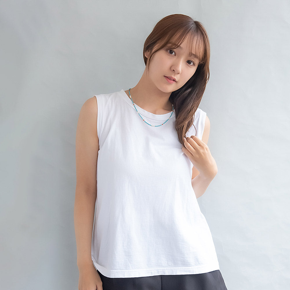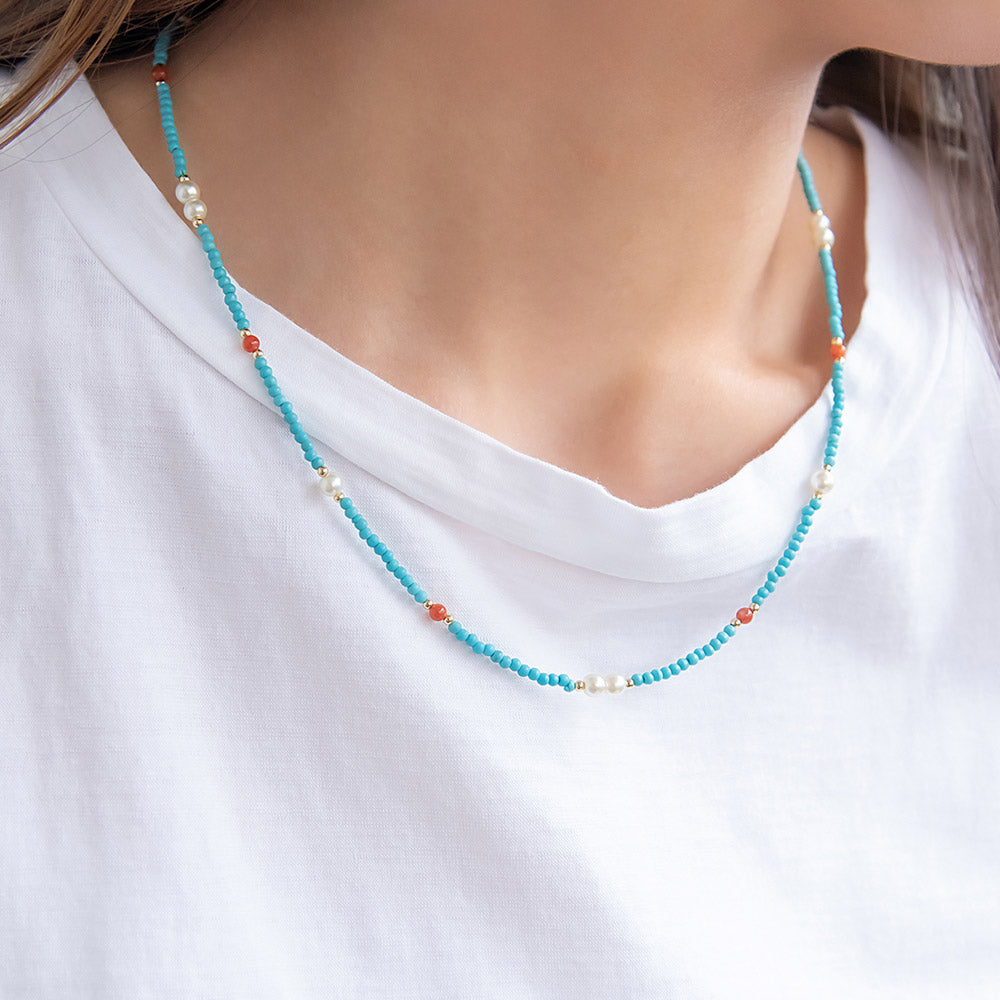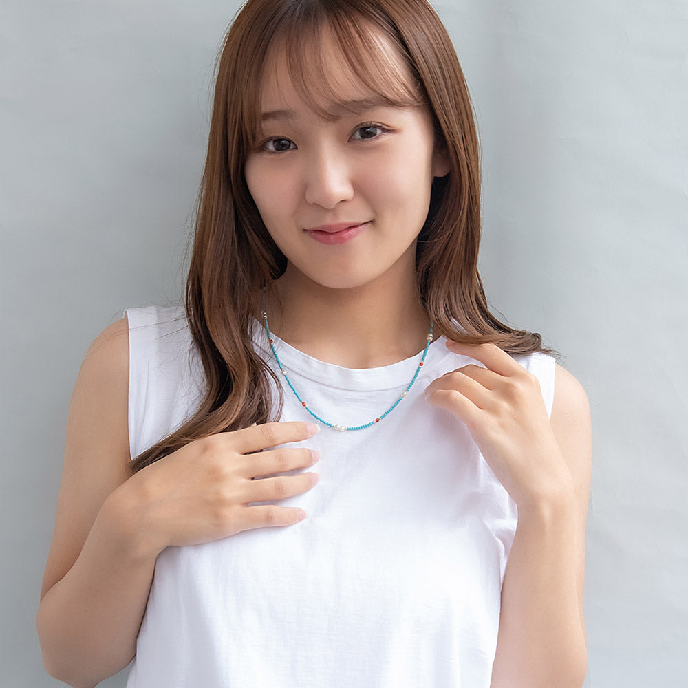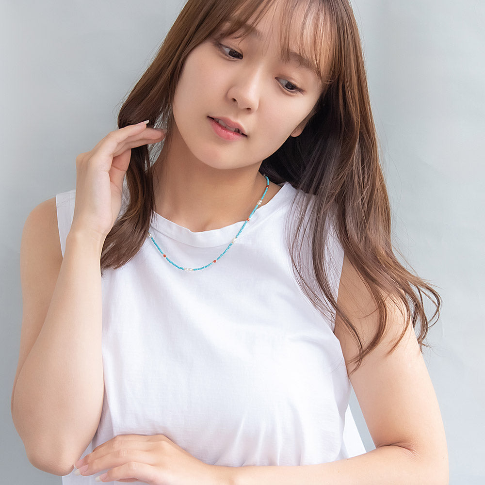 nk1138爽やかなターコイズカラーに、アゲートの赤をアクセントに。天然石を使った個性が光るネックレス。
