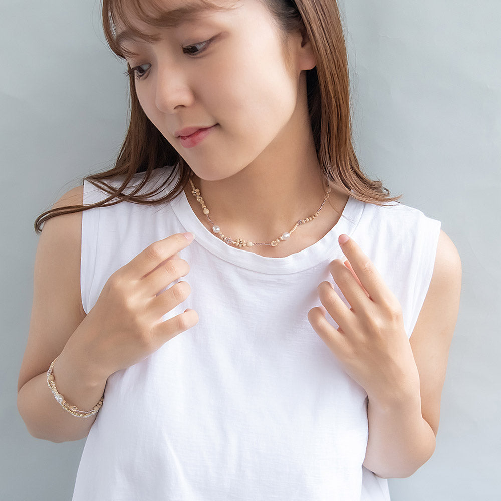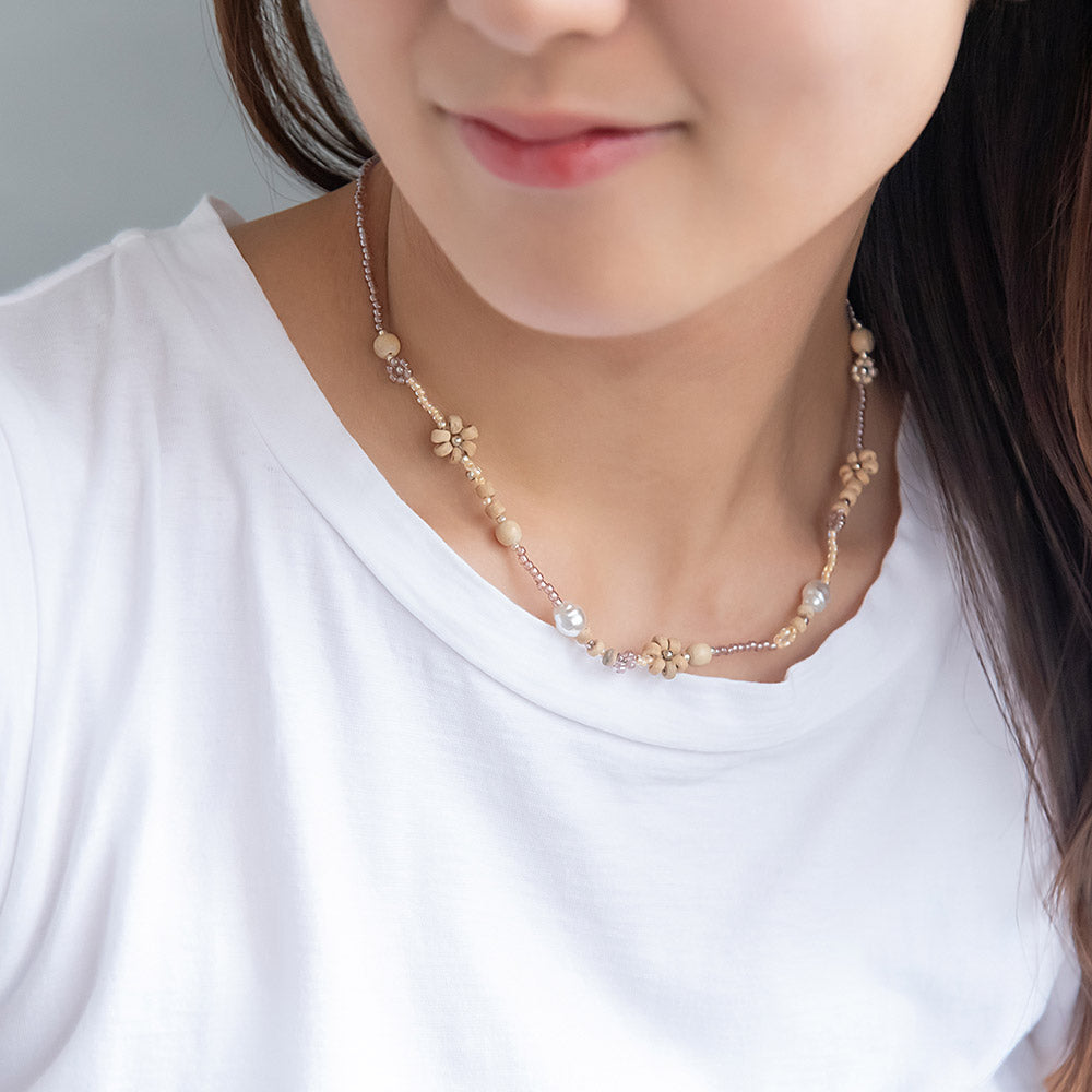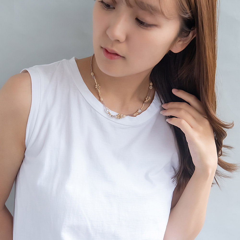 ネックレス フラワー カラー ココビーズ パール ショートネックレス