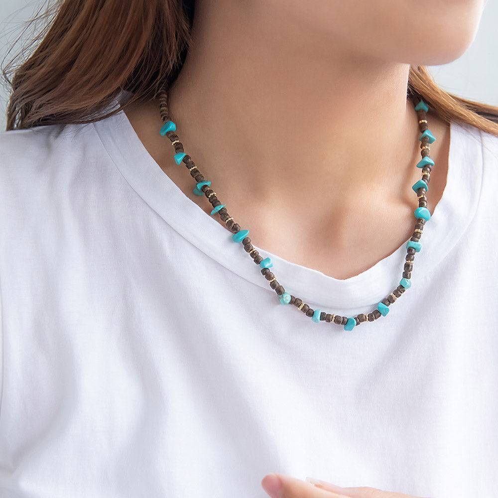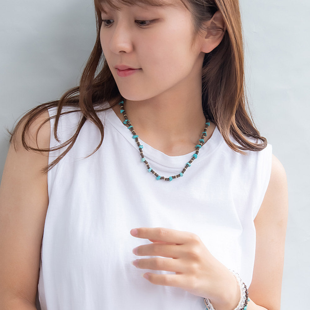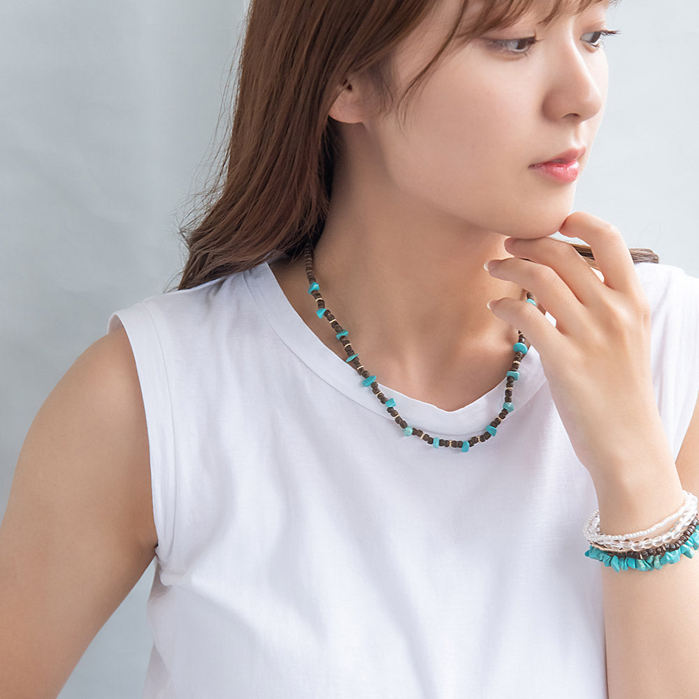 ネックレス メタル ココビーズ 天然石 ショートネックレス