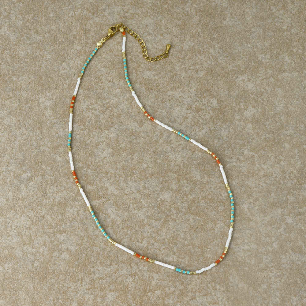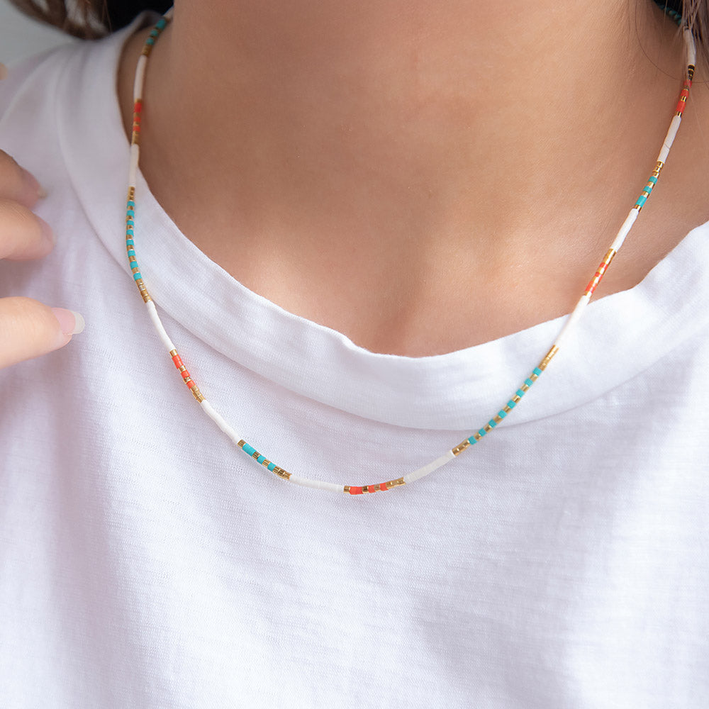 nk1145季節を問わないシンプルなデザインで様々なコーディネートに合わせやすいビーズネックレス。