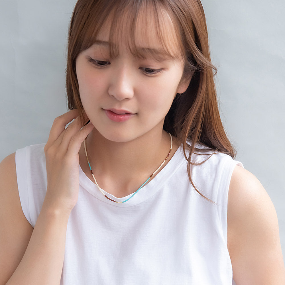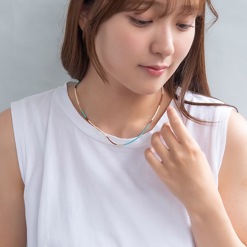 nk1146季節を問わないシンプルなデザインで様々なコーディネートに合わせやすいビーズネックレス。