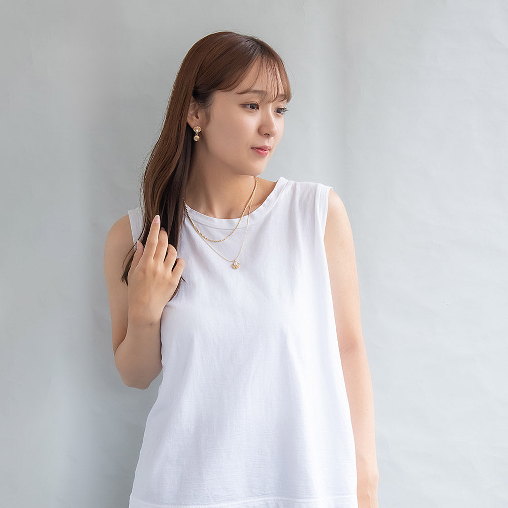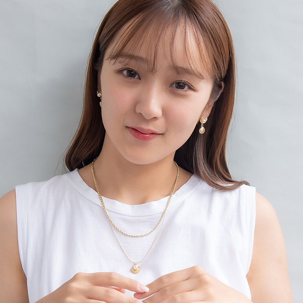nk1155パールxシェルモチーフがシーズンライクな雰囲気漂うネックレス。デザイン違いのチェーンが織りなす2連風デザインがおしゃれ。
