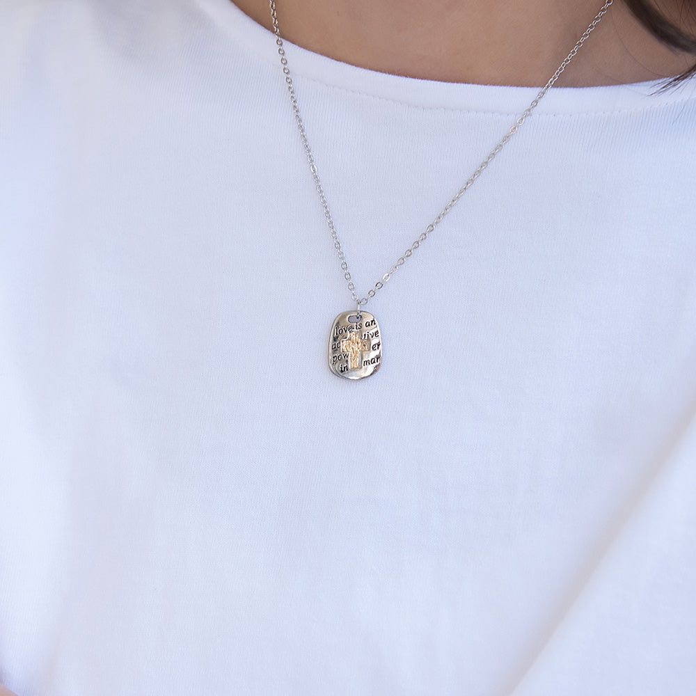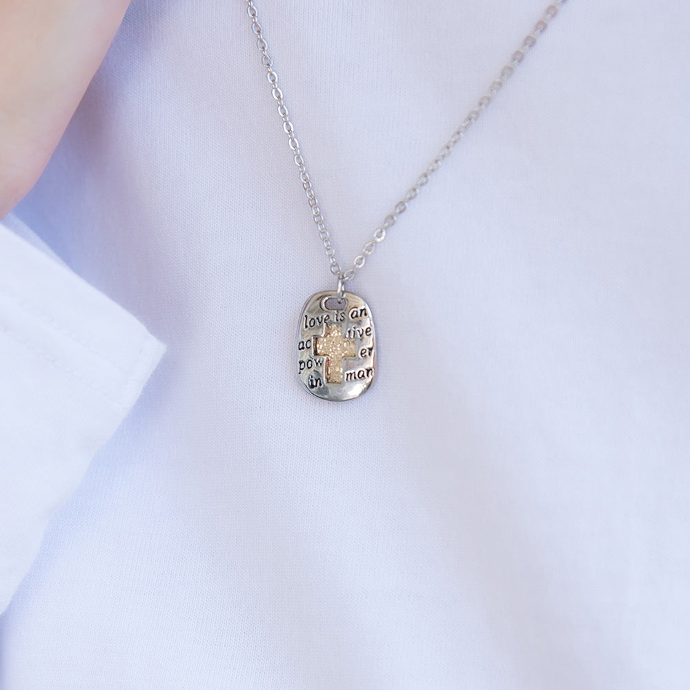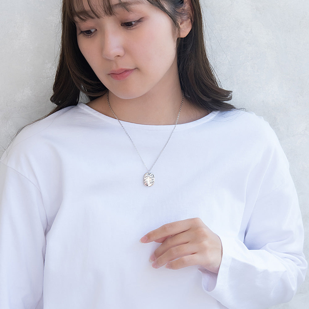 ネックレス ニッケルフリー メタル メッセージ オーバル クロス チェーン ショートタイプ ペンダントネックレス