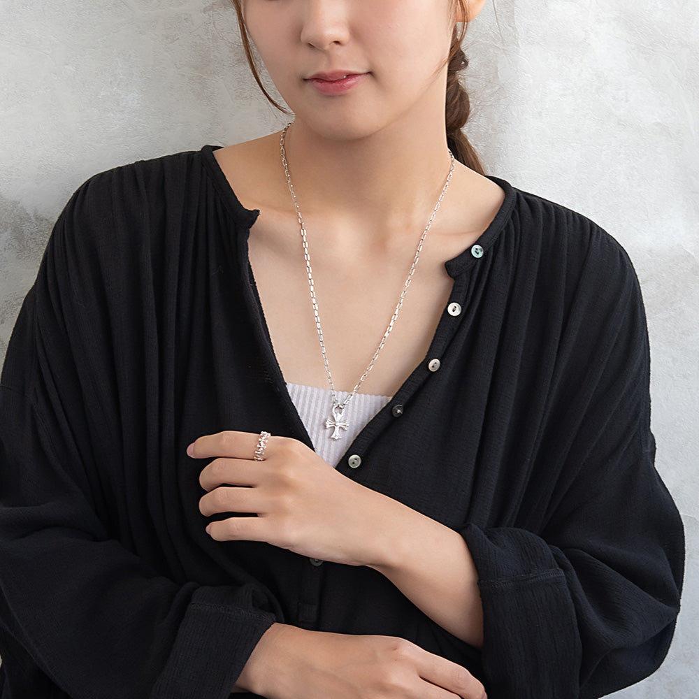 ネックレス Awesome ニッケルフリー メタル クロス オーバルチェーン ペンダントネックレス