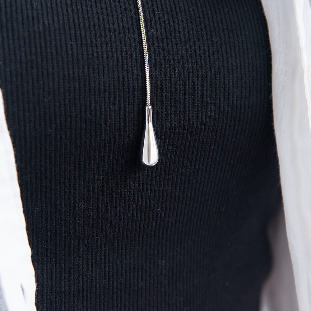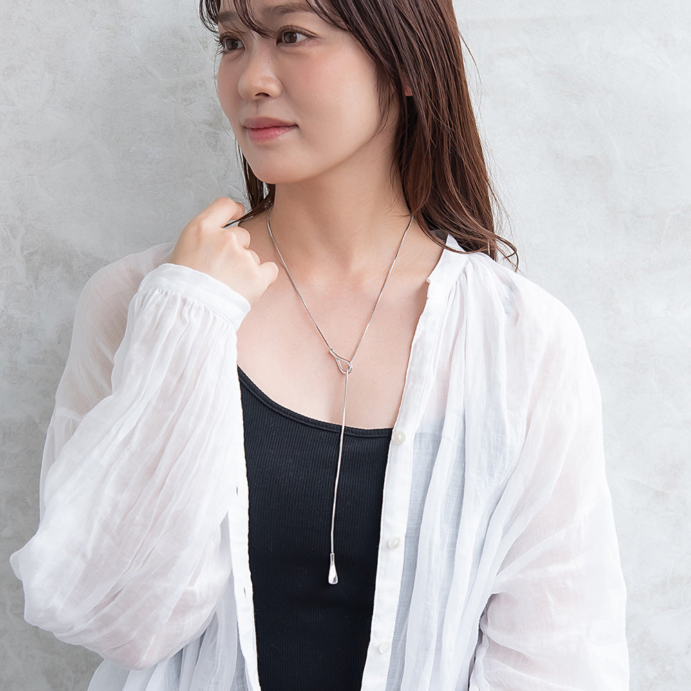 nk1167胸元にそっと寄り添う、ステンレスのラリエットネックレスです。気分やファッションに合わせて、長さを自由に調節できるのが嬉しいポイント。シンプルで飽きのこないデザインなので、毎日でもつけたくなるお気に入りになるはず。