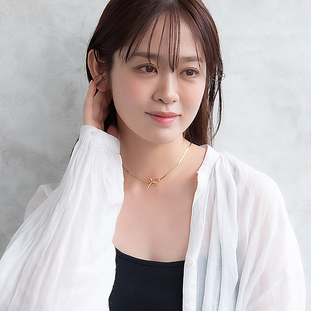 ネックレス ステンレス スネークチェーン メタル リボン ショートネックレス