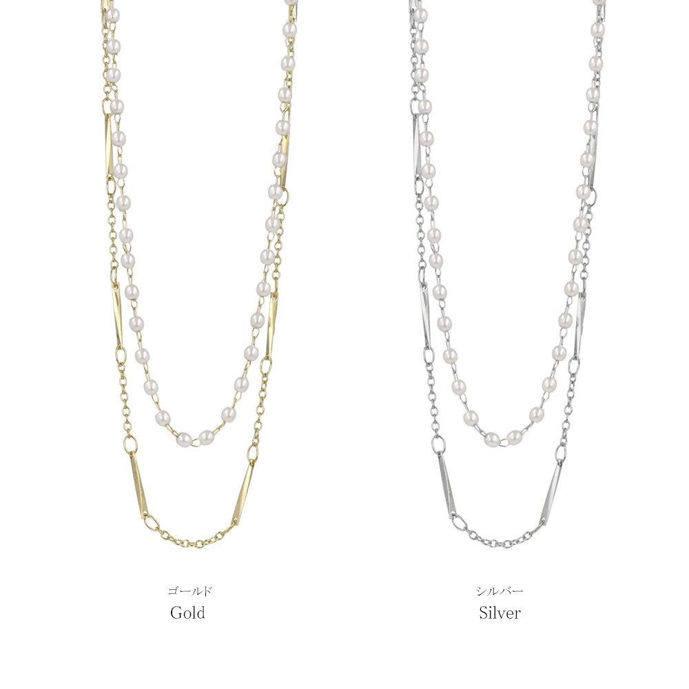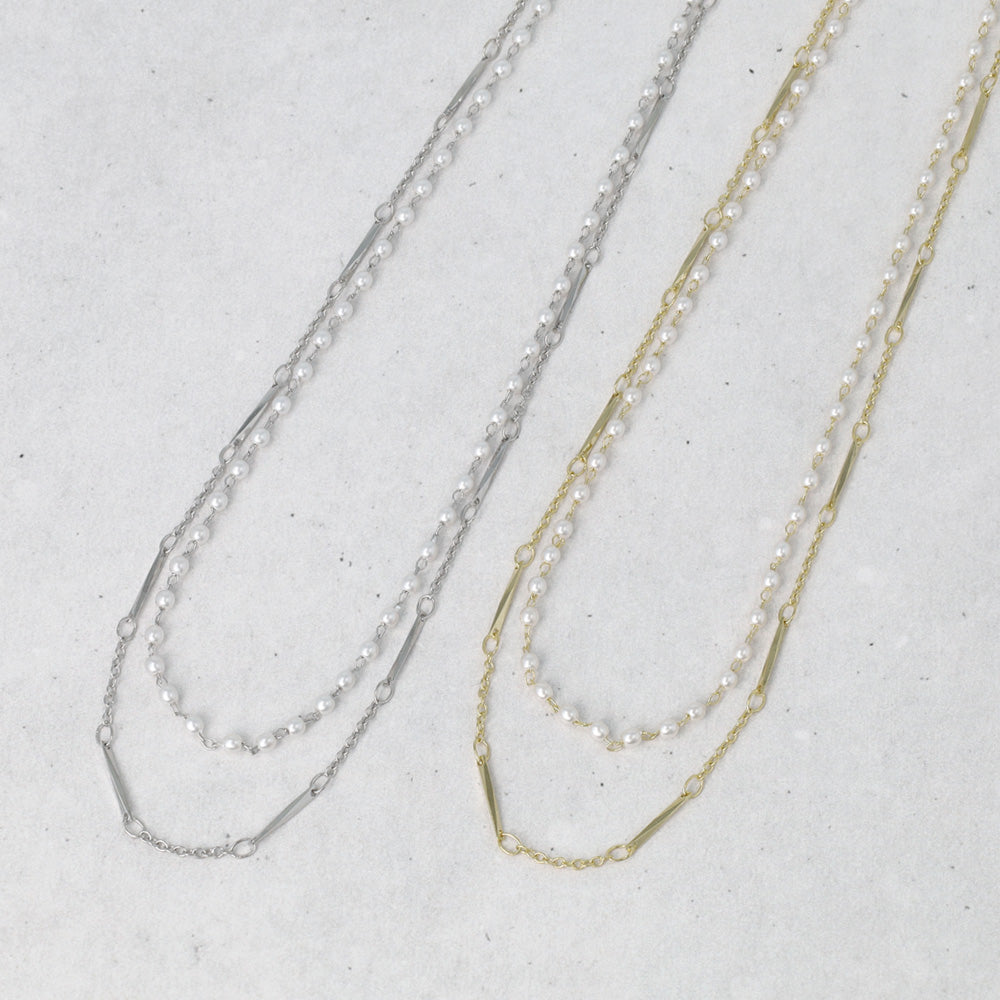 nk1182プチパールとメタルの2連ネックレス。デイリーで使えるシーズンレスなデザインです。