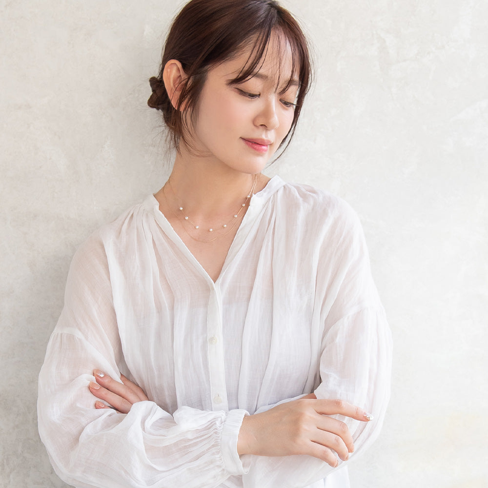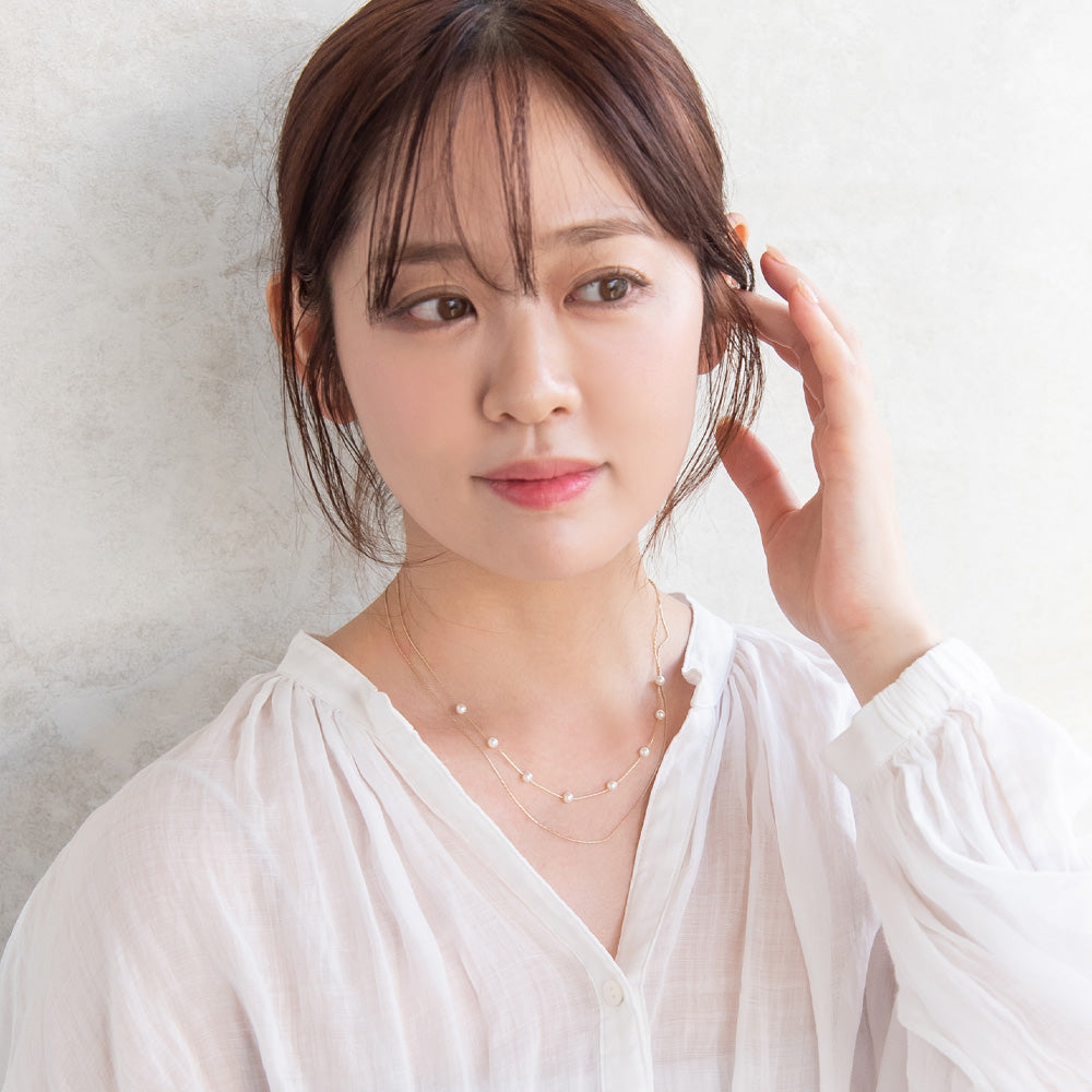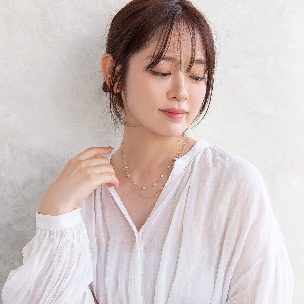 ネックレス ニッケルフリー ドット パール チェーン 2連 ショートネックレス
