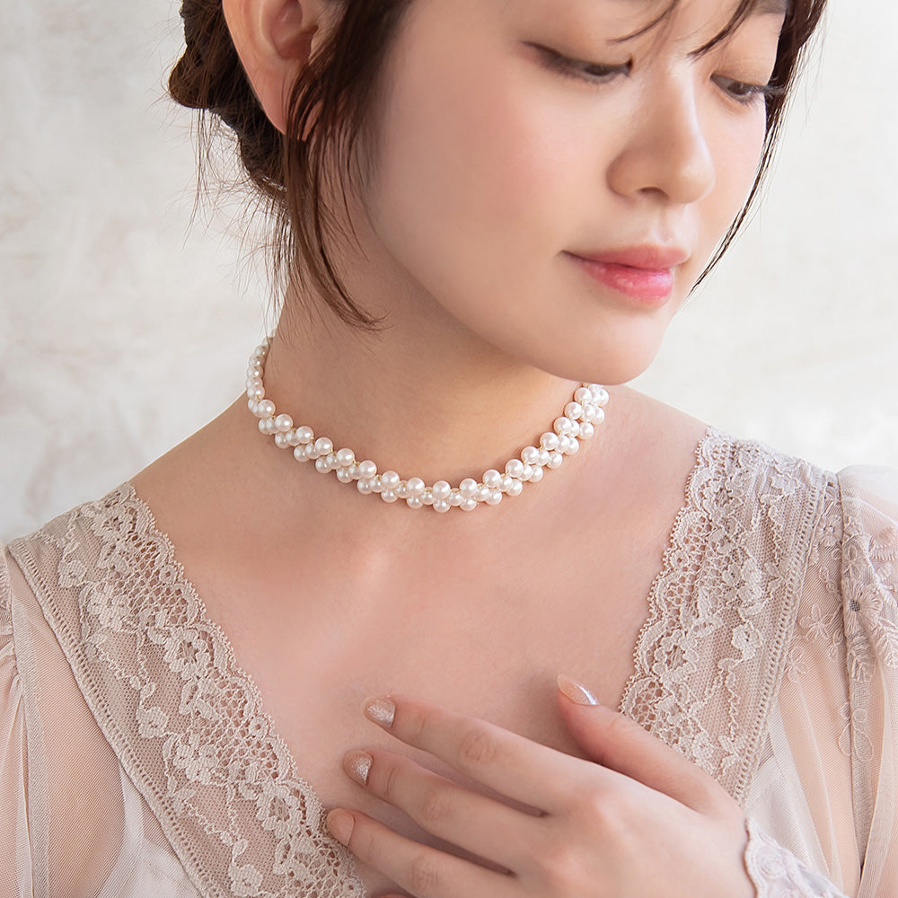 品のある華やかさと輝きを放つ、パールのアクセサリー。おしゃれテンションが上がる首飾りは、結婚式やパーティーシーンだけでなくカジュアルに合わせるのも◎