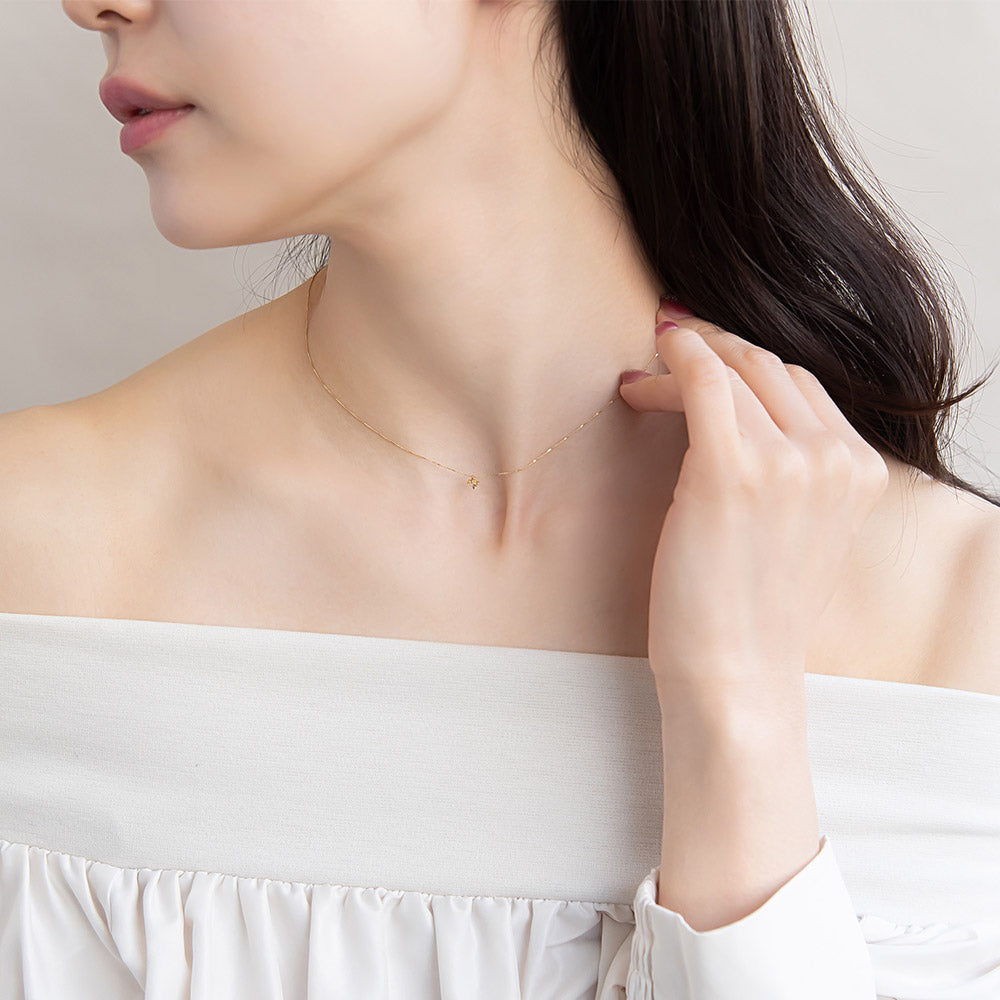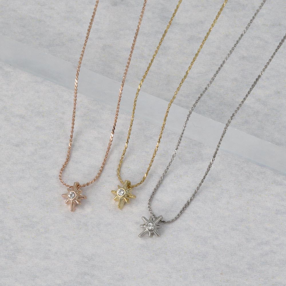 ネックレス tiny. ニッケルフリー メタル スター 星 一等星 ストーン 小粒 超極細 チェーン プチネックレス