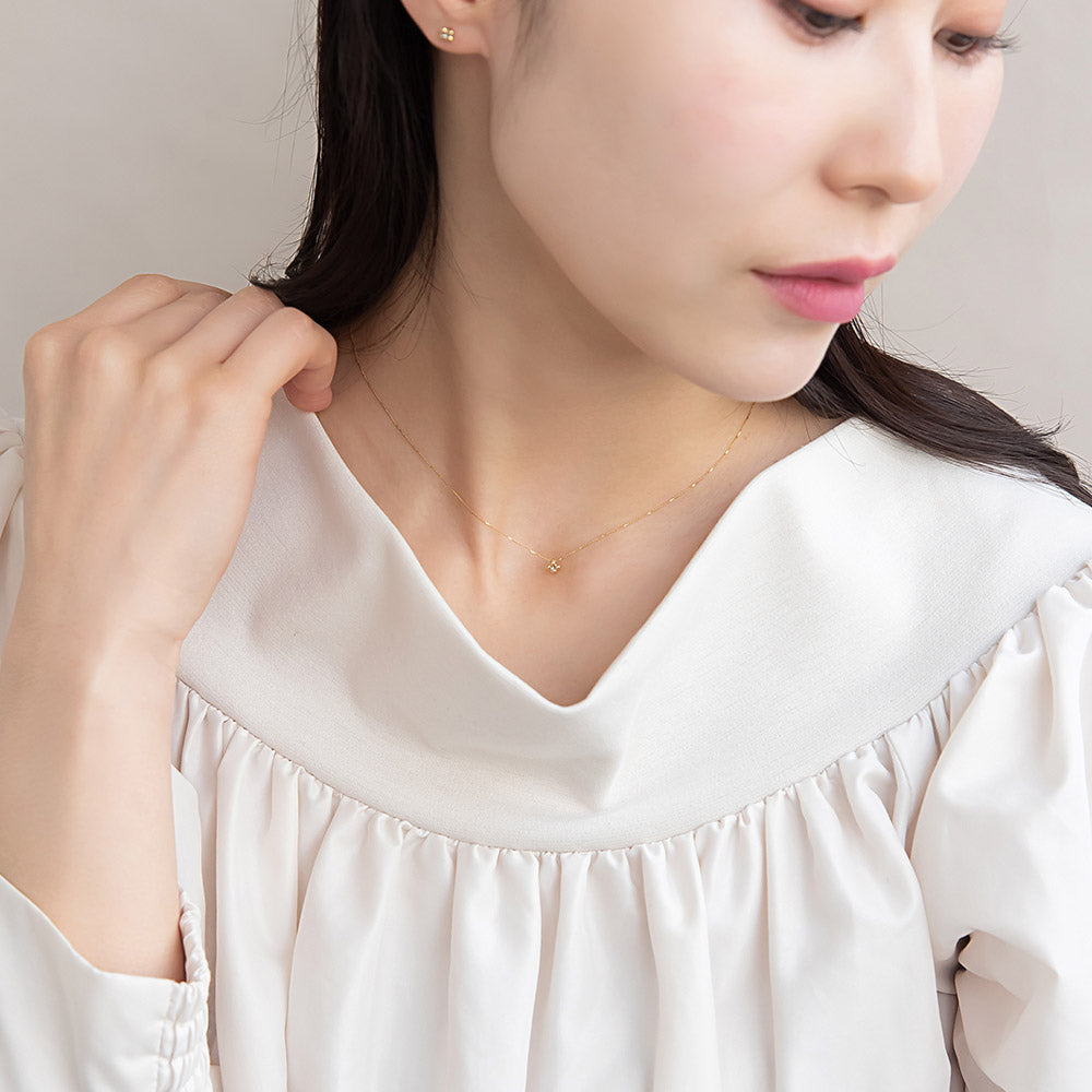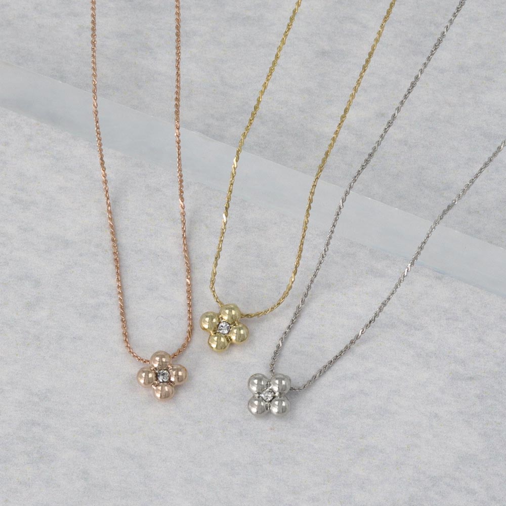 ネックレス tiny. ニッケルフリー メタル フラワー 花 ストーン 小粒 超極細 チェーン プチネックレス