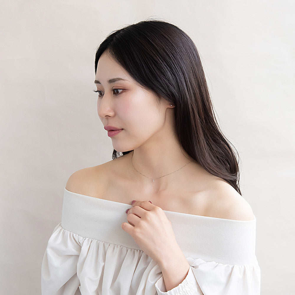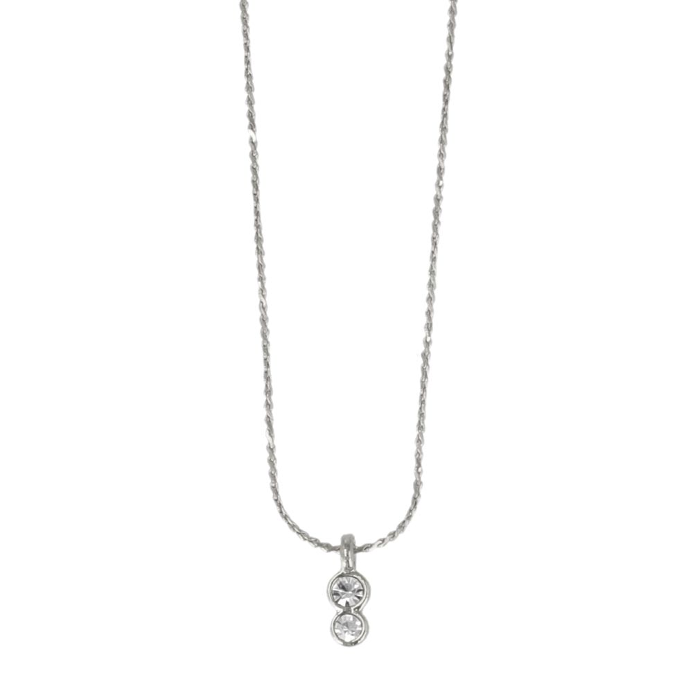 ネックレス tiny. ニッケルフリー メタル フレーム 小粒 ダブル ストーン 2粒 ライン 超極細 チェーン プチネックレス