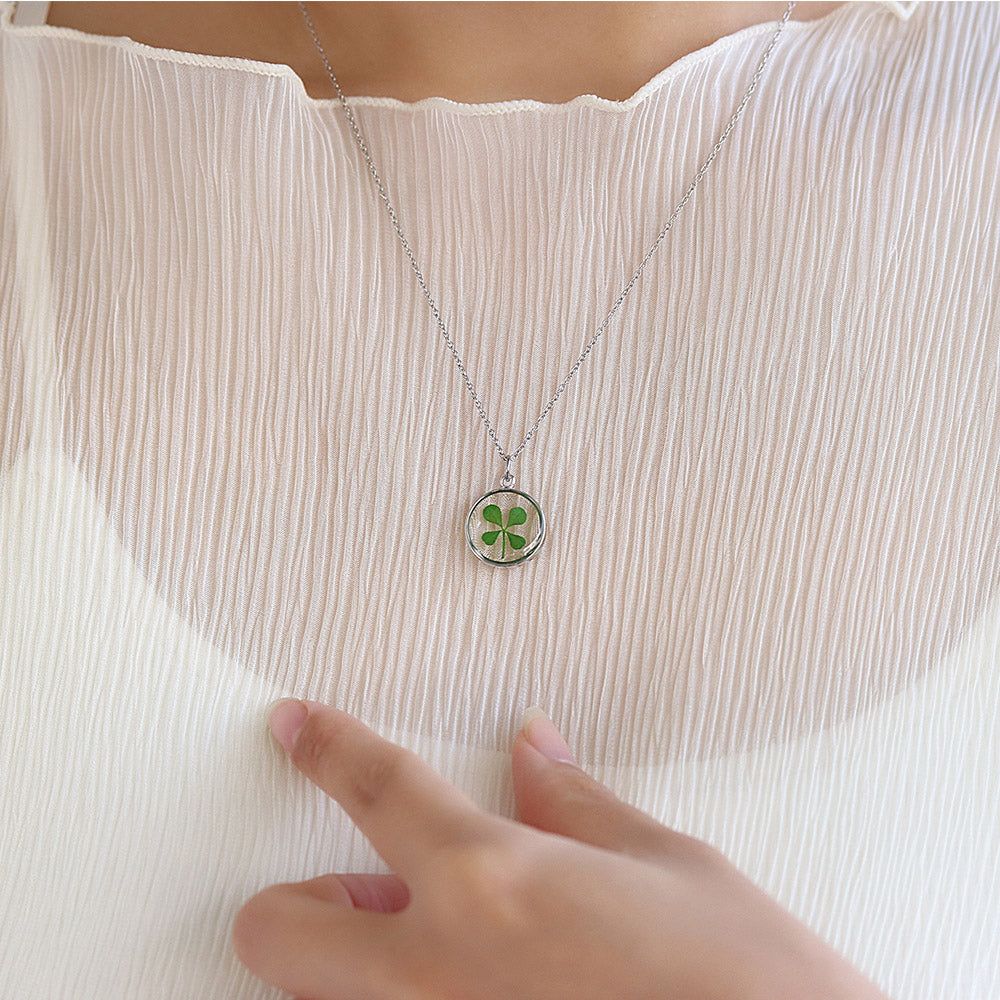 ネックレス ステンレス ドライフラワー クローバー 四つ葉 クリア サークル チェーン プチネックレス
