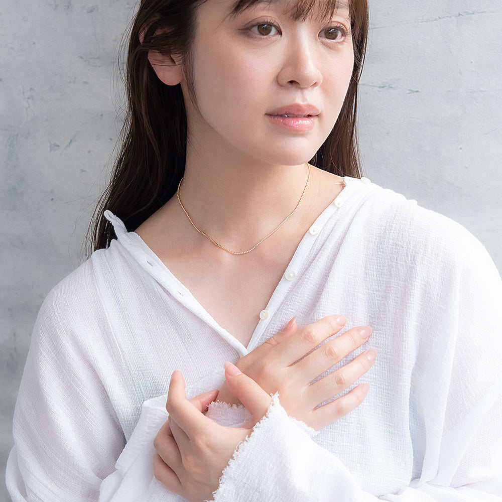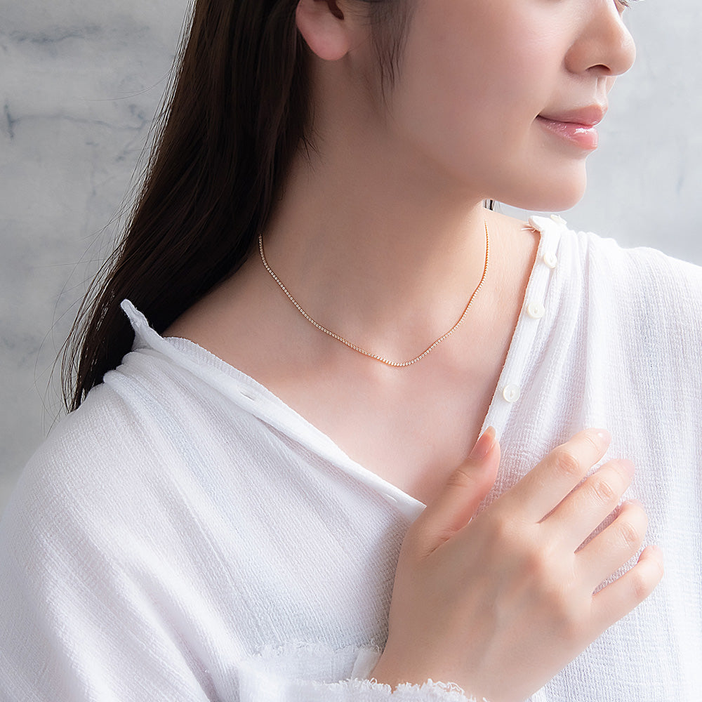 np0518キュービックジルコニアを使ったシンプルな1連ネックレス。丁度よい長さで単品でも重ね付けでも合わせられるマストなアイテム。