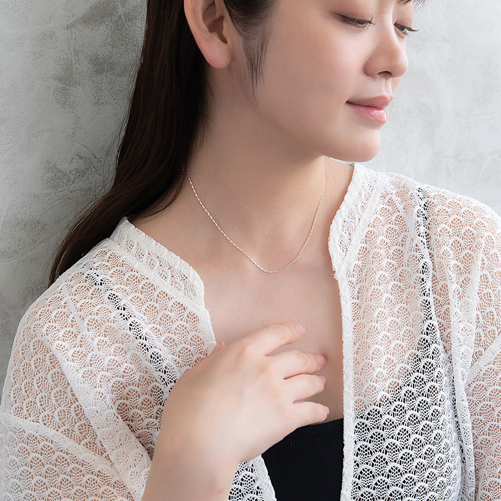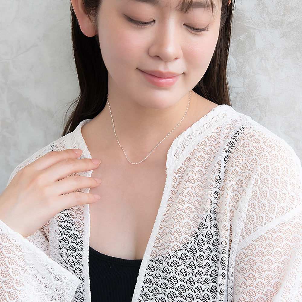 np0519キュービックジルコニアを使ったシンプルな1連ネックレス。丁度よい長さで単品でも重ね付けでも合わせられるマストなアイテム。