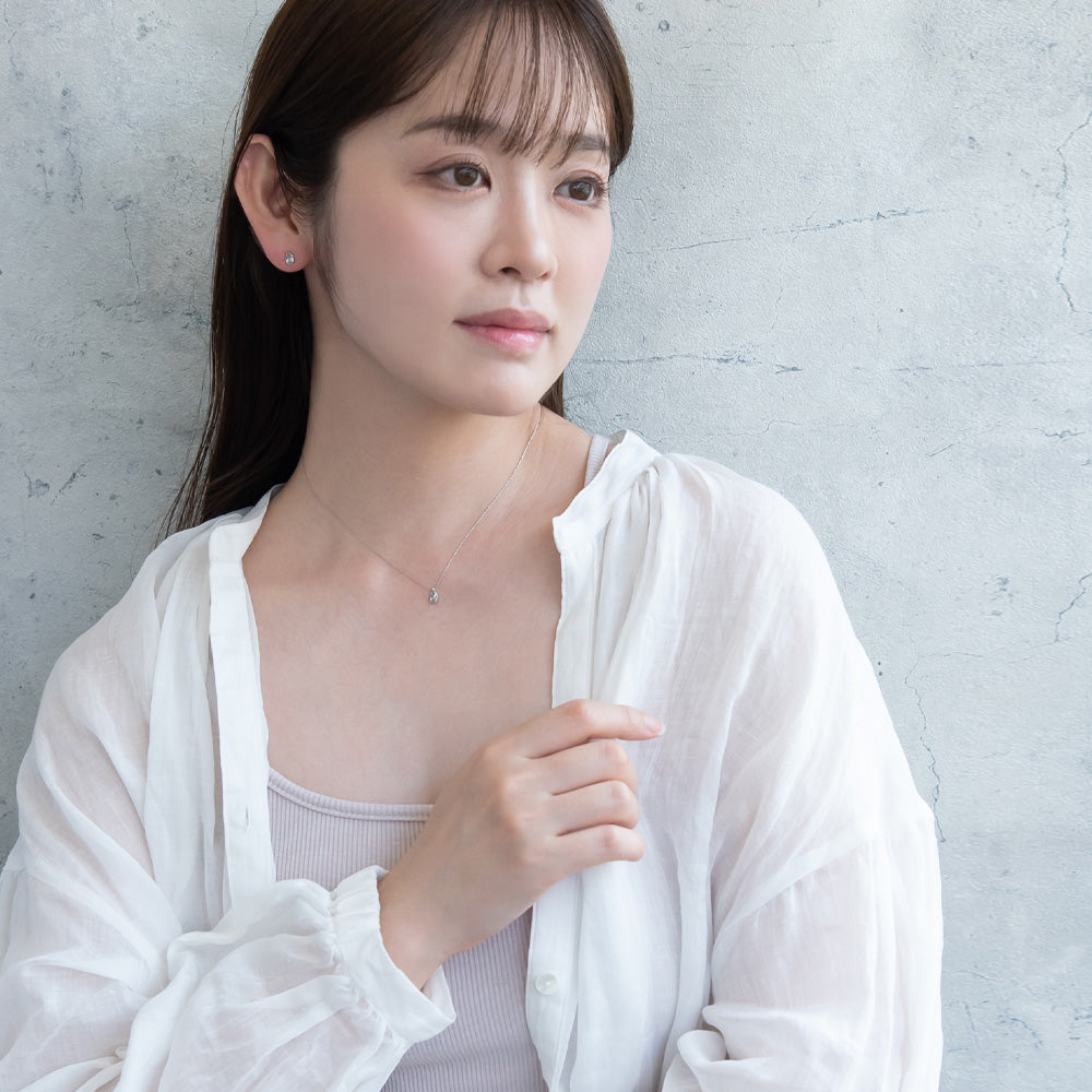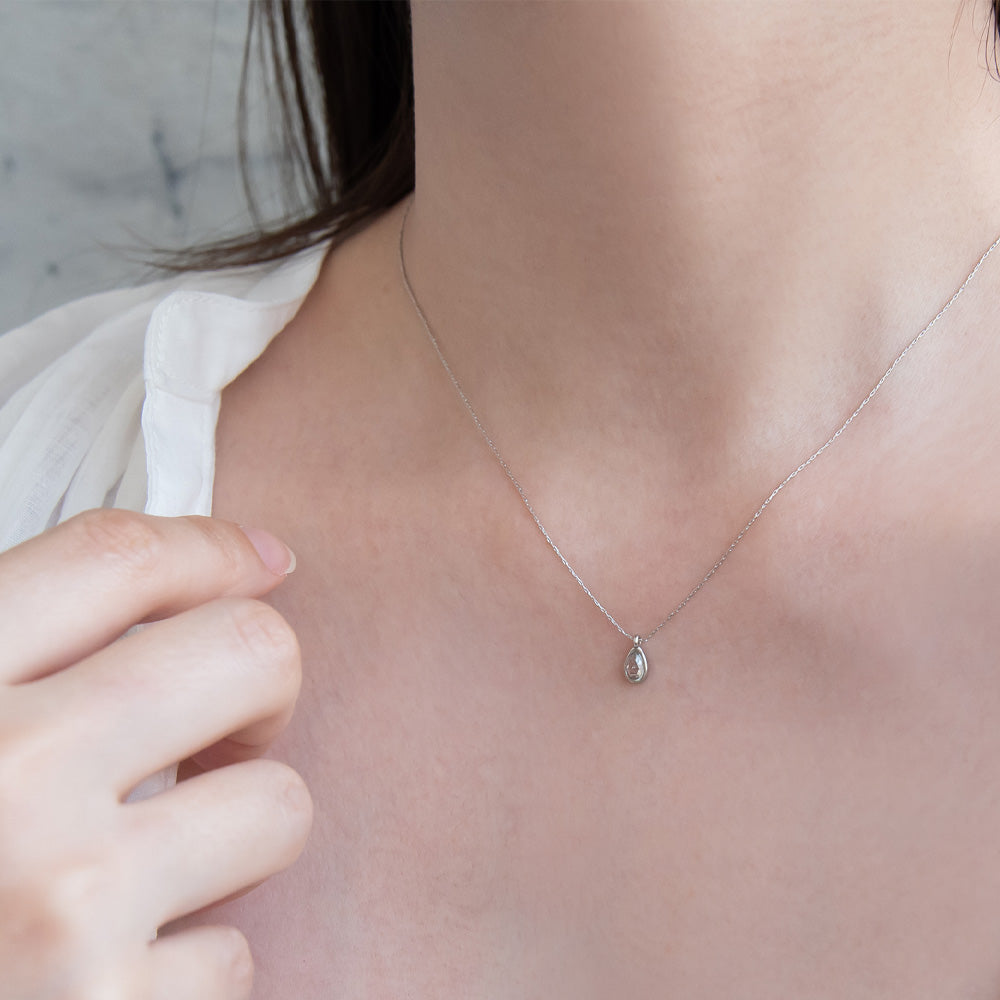 ネックレス ニッケルフリー rose cut キュービックジルコニア メタル フレーム ティアドロップ プチネックレス