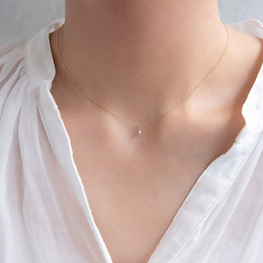 ネックレス tiny. ニッケルフリー メタル ストーン パール ライン 小粒 超極細 チェーン プチネックレス