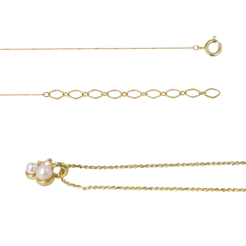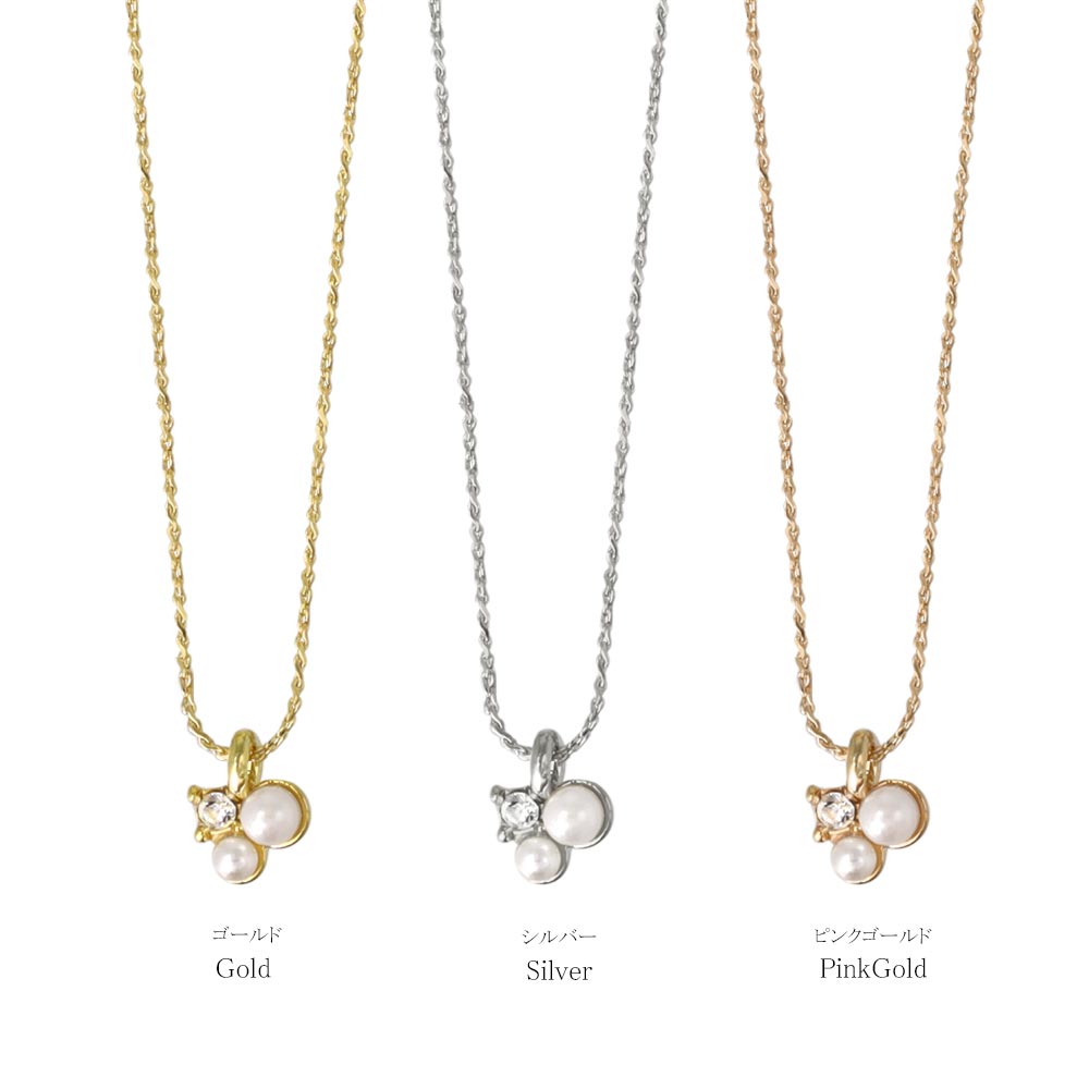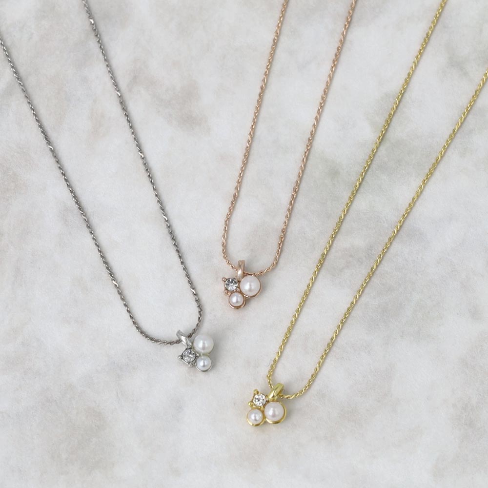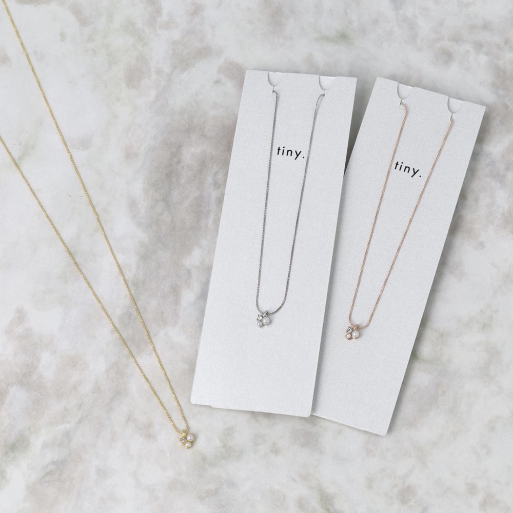 ネックレス tiny. ニッケルフリー メタル ストーン ダブル パール 小粒 超極細 チェーン プチネックレス