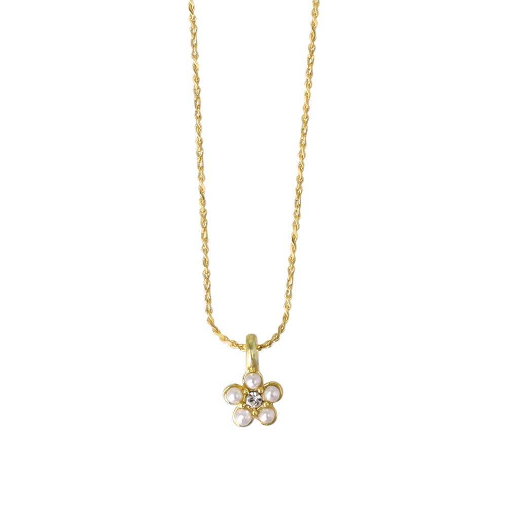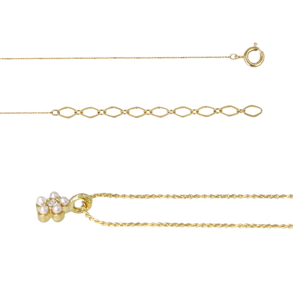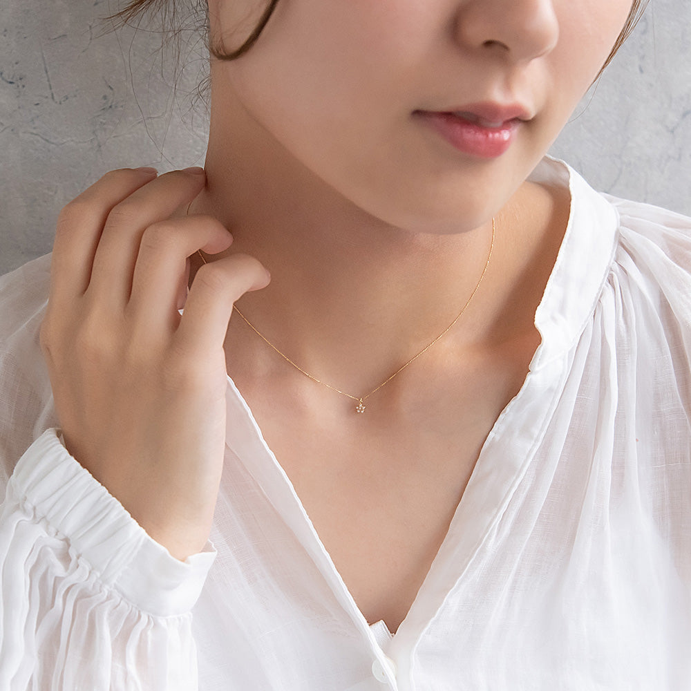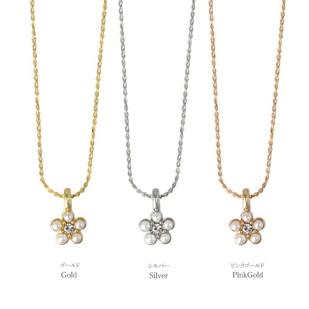ネックレス tiny. ニッケルフリー メタル ストーン パール フラワー 小粒 超極細 チェーン プチネックレス